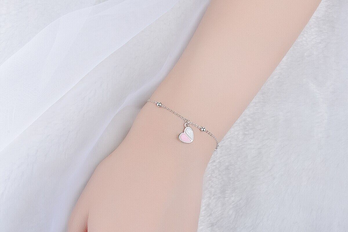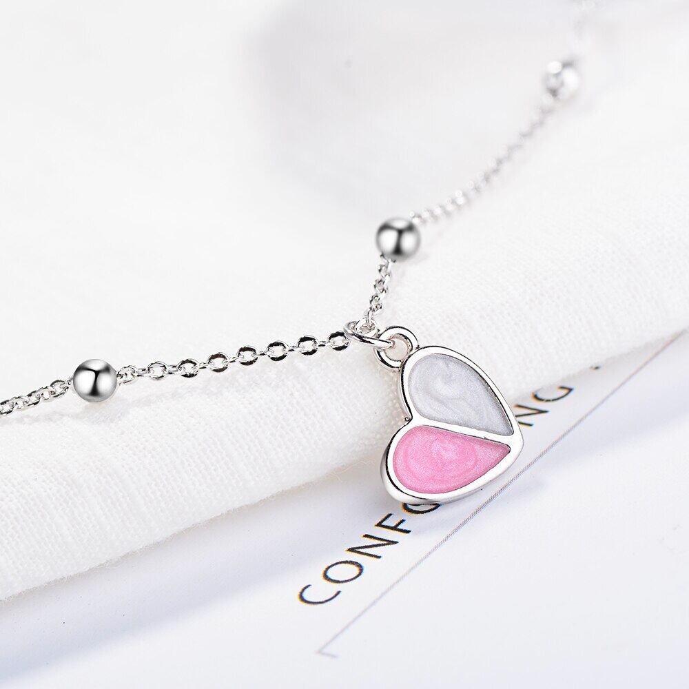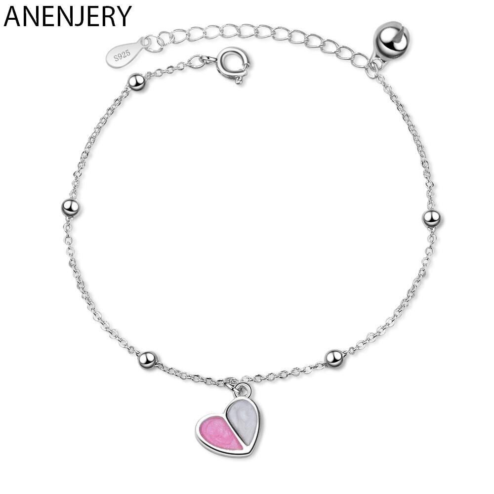 送料無料 ANENJERYシルバーカラーハートブレスレットレディースピンクアイスクリームハートベルブレスレットS-B165 銀 アクセサリー AE16553988975215