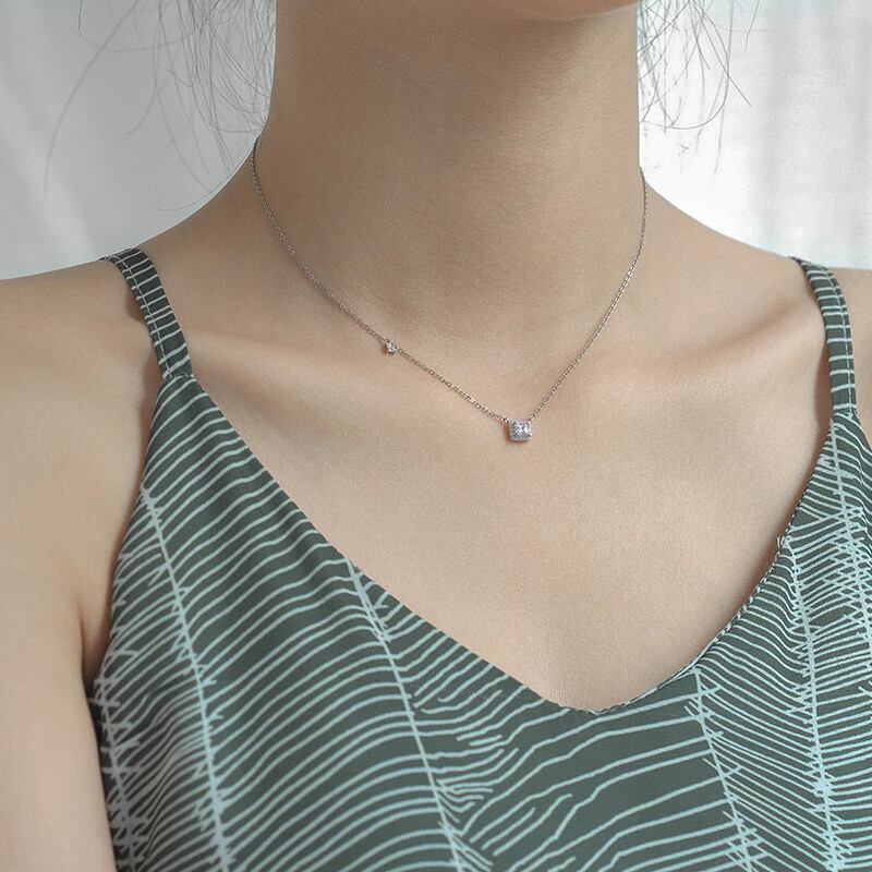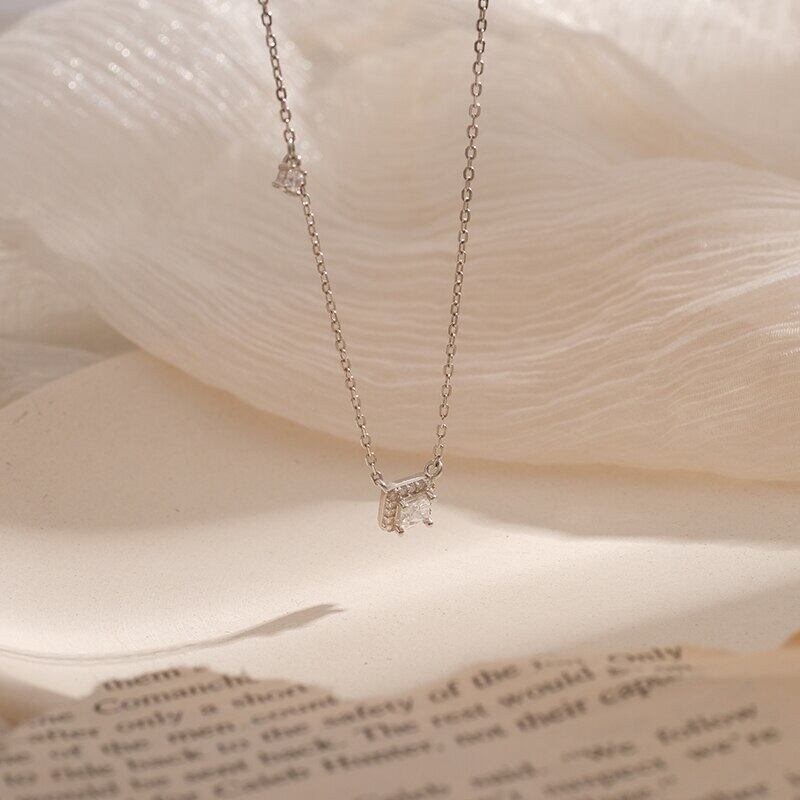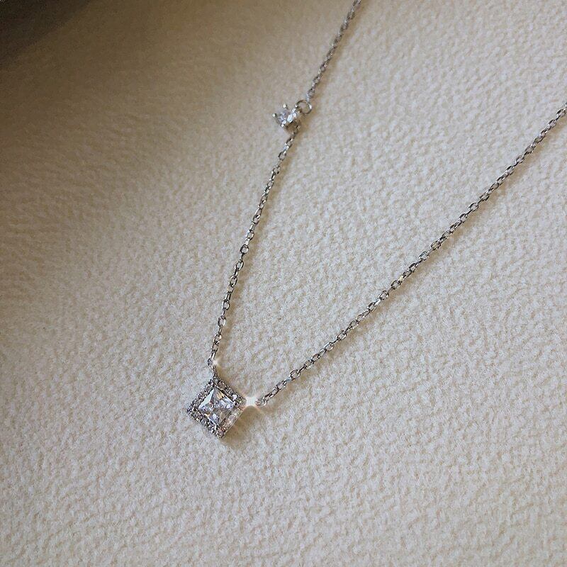 送料無料 ANENJERYシルバーカラーシャイニーシルバースクエアキュービックジルコニアネックレス女性ウェディング花嫁ギフト気質ジュエリーギフトS-N721 レース 銀 スクウェア アクセサリー AE165545294003219