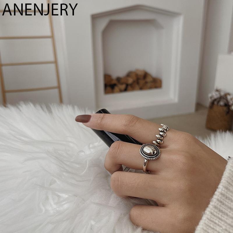 送料無料 ANENJERYシルバーカラーオーバルシェイプリングレディースメンズウーブンタイシルバーアジャスタブルリングジュエリーギフト 指輪 銀 アクセサリー AE165557228927396