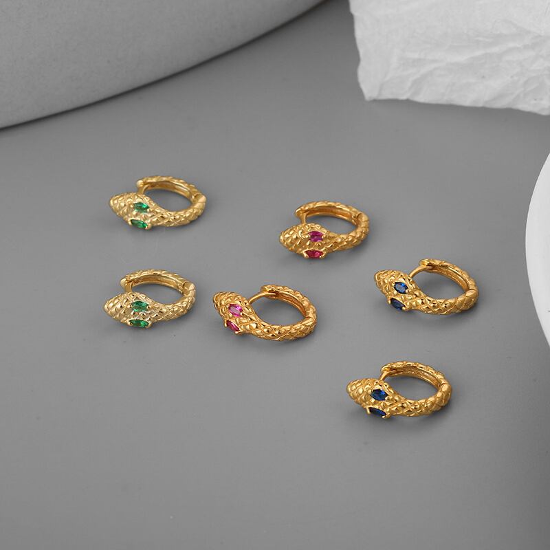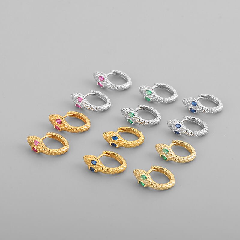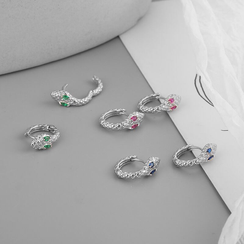 送料無料 ANENJERYシルバーカラースネークCZフープピアス女性小動物ゴールドピアスジュエリー イヤリング リング 指輪 銀 アクセサリー AE165551041349092