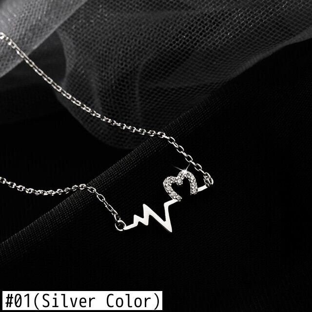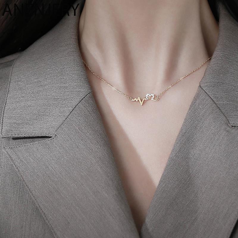 送料無料 ANENJERYシルバーカラーハートウェーブチャームネックレス女性Mnimalist鎖骨チェーンチョーカーウェディングジュエリー レース 銀 アクセサリー AE165518254202589