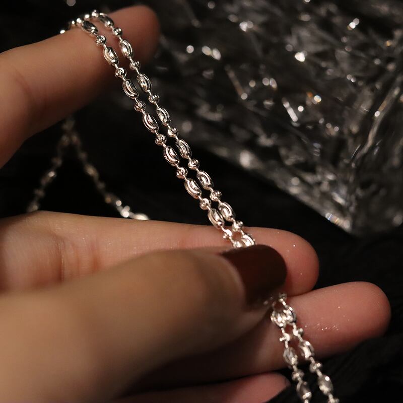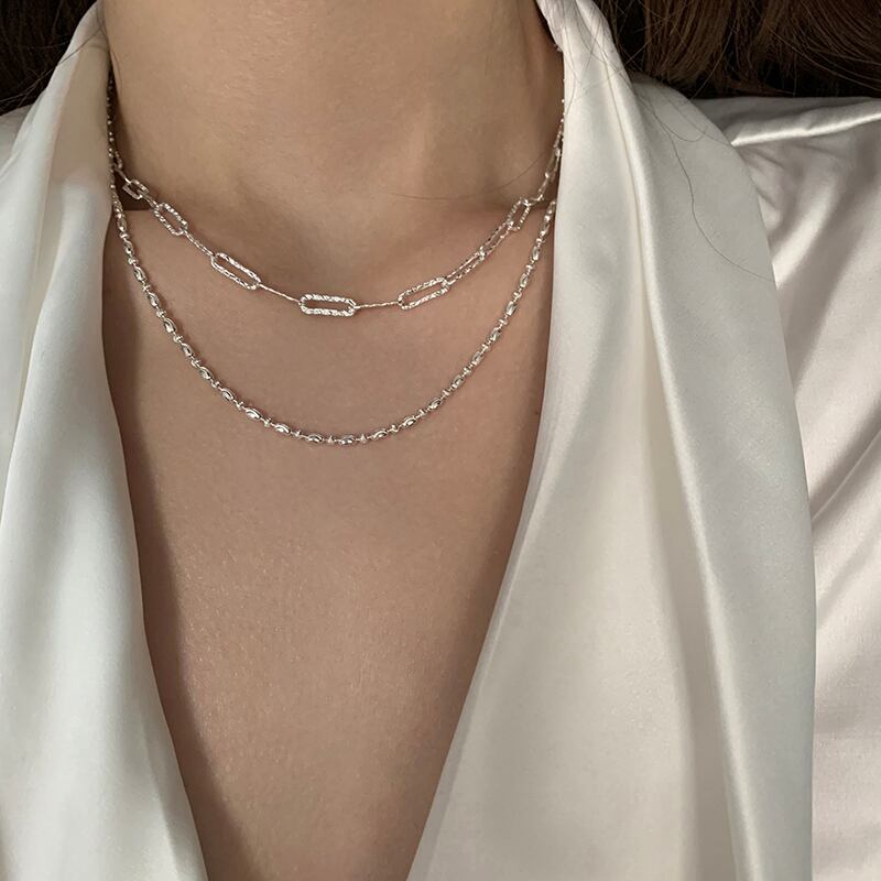 送料無料 ANENJERYシルバーカラー刻まれたビーズチョーカーネックレス女性高級ライトクラビクルチェーンウェディングパーティージュエリー レース 銀 アクセサリー AE165545878779572