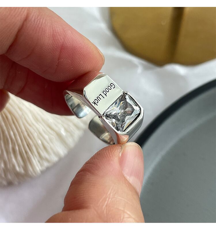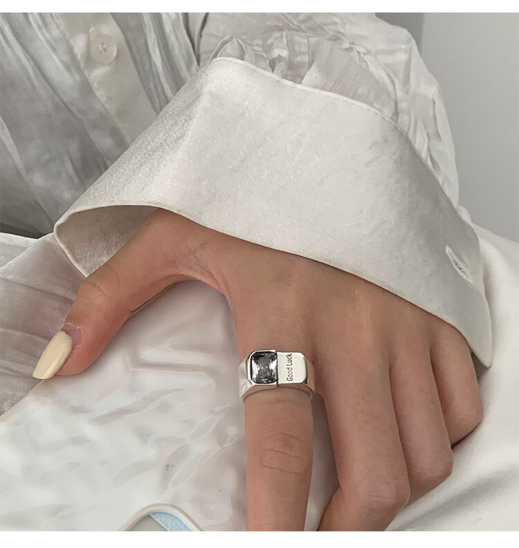 送料無料 ANENJERYSSilverカラースクエアジルコン人差し指リング調節可能なヒップホップリング アジャスタブル 指輪 シルバー 銀 スクウェア アクセサリー AE165524096633257