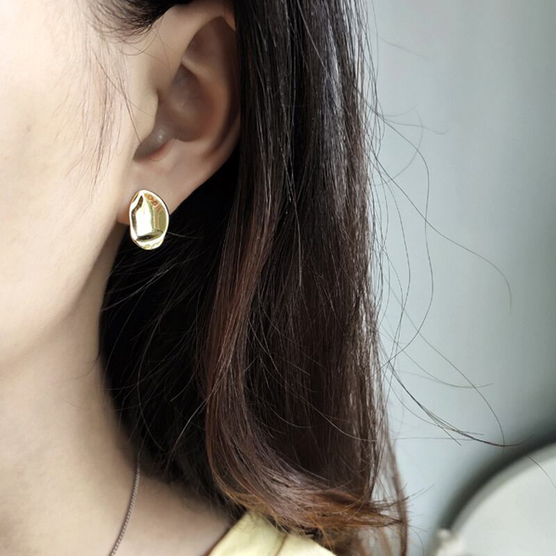 送料無料 ANENJERYシルバーカラーイレギュラーディスクスタッドピアスレディーススムースフレンチゴールドカラーイヤリングジュエリー2022 指輪 銀 アクセサリー AE165561181059335