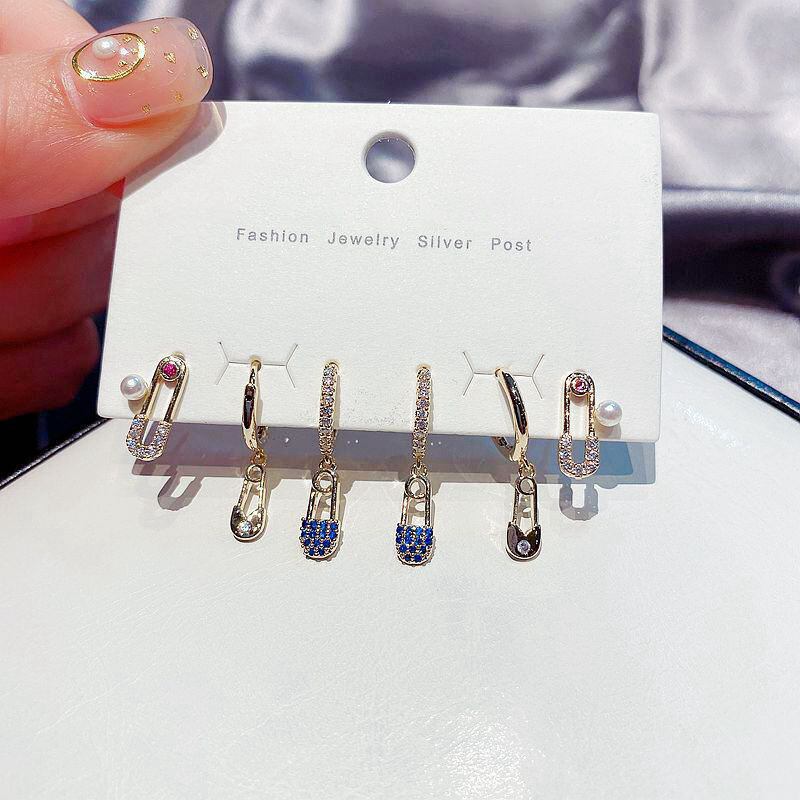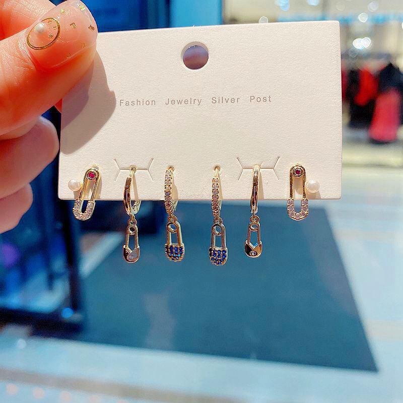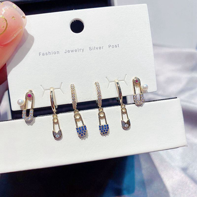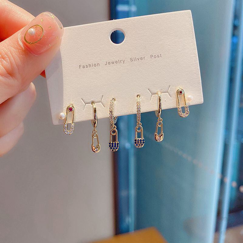送料無料 ANENJERYシルバーカラー6個/セットピン型フープピアスセットレディースパーティージュエリー イヤリング リング 指輪 銀 アクセサリー AE165530286593347