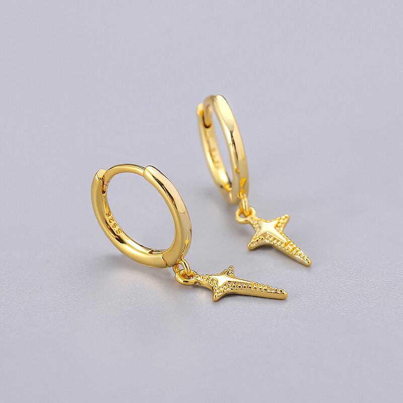 送料無料 ANENJERYシルバーカラークロススターフープピアスシンプルゴールデンフレンチピアス イヤリング リング 指輪 銀 アクセサリー AE165548059999182