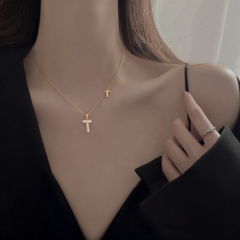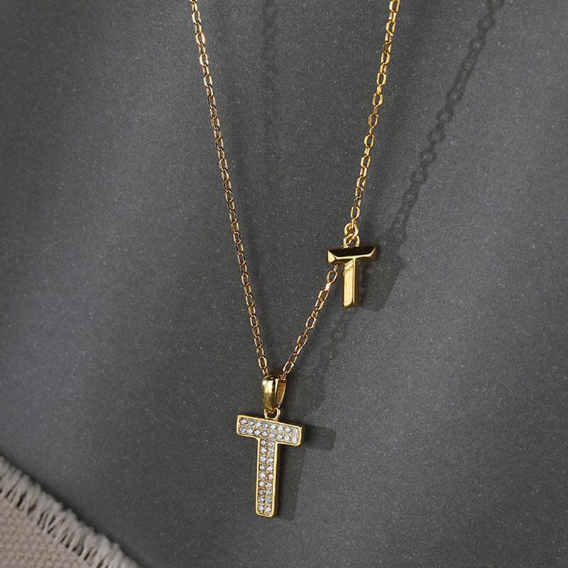 送料無料 ANENJERYシルバーカラー銅ジルコンレターTペンダントネックレス女性シンプル可憐なチェーンジュエリーオールマッチ レース 銀 アクセサリー AE165531901724745
