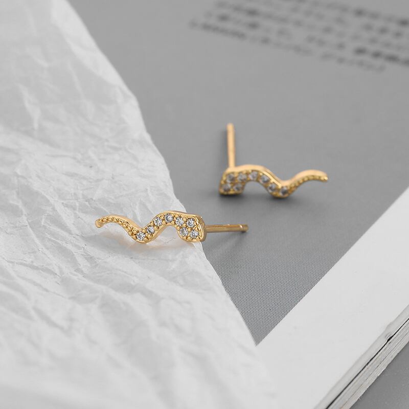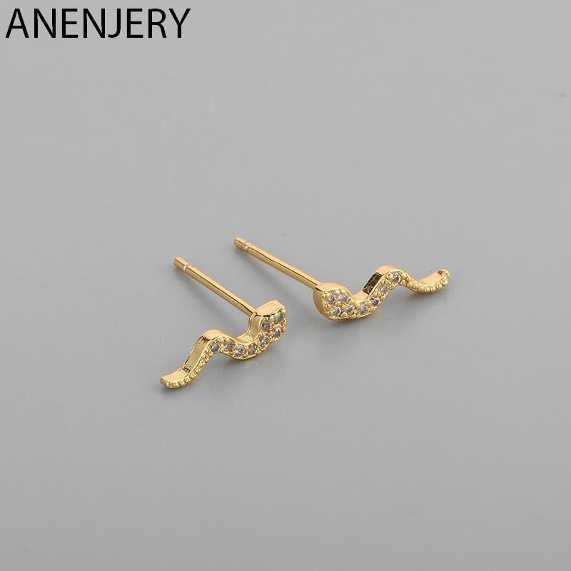 送料無料 ANENJERYシルバーカラースネークスタッドピアス女性男性ミニマリスト小さな小さな動物のジュエリー イヤリング リング 指輪 銀 アクセサリー AE165535805248031
