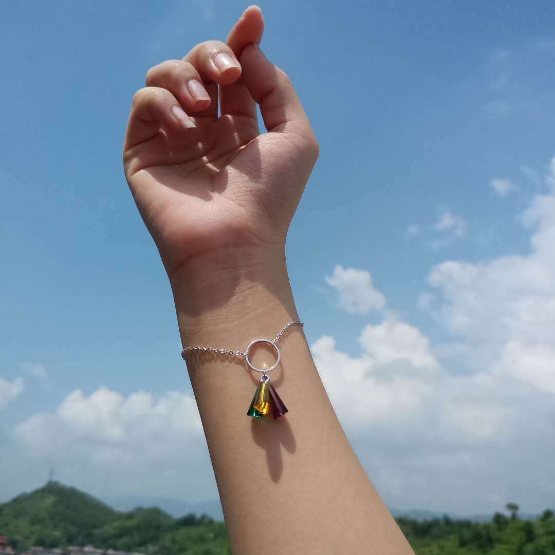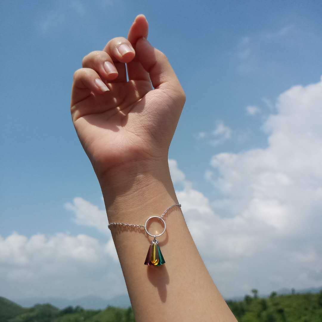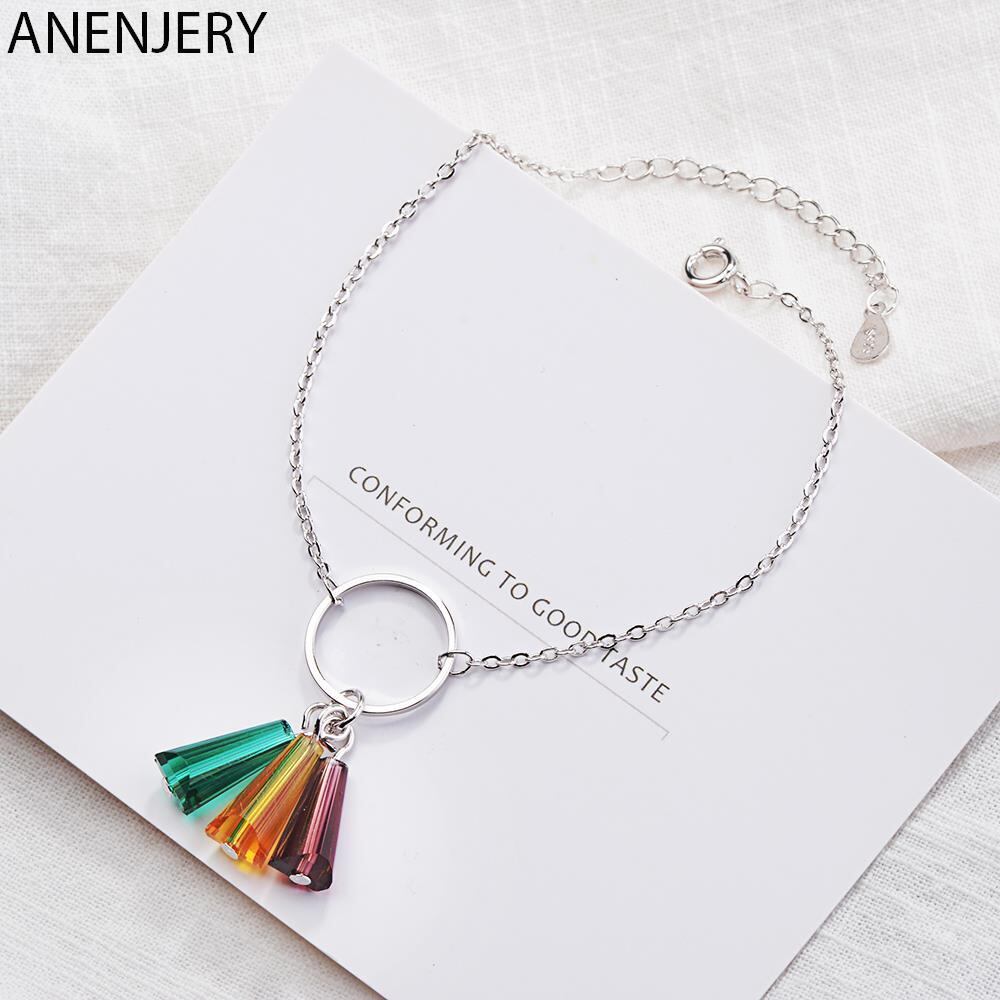 送料無料 ANENJERYシルバーカラーブレスレットカラフルレインボー人工水晶扇形ブレスレット女性S-B210 銀 アクセサリー AE165582205202512