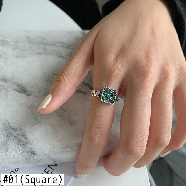 送料無料 ANENJERYシルバーカラーヴィンテージグリーンブラックストーンリング女性タイシルバーカラーリングウェディングギフトラグジュアリーデイリージュエリーS-R950 指輪 銀 ビンテージ アクセサリー AE165538740231079