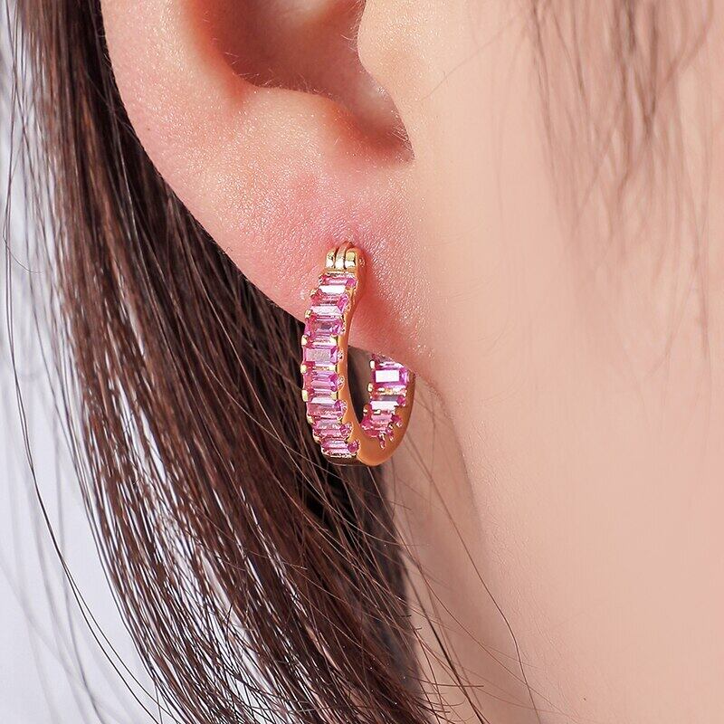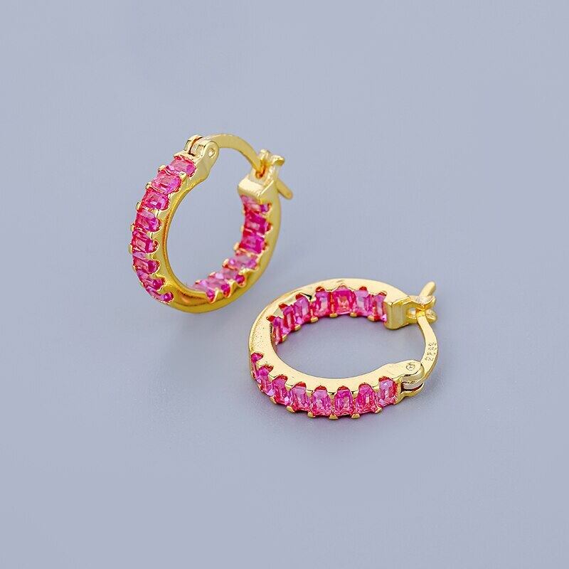 送料無料 ANENJERYカラーキュービックジルコンハギーフープピアスレディースシルバーゴールドカラーイヤリングジュエリーアクセサリーギフト レッド 指輪 銀 アクセサリー AE165560425895816