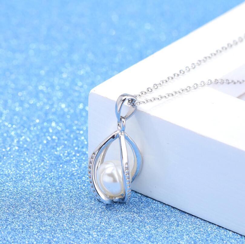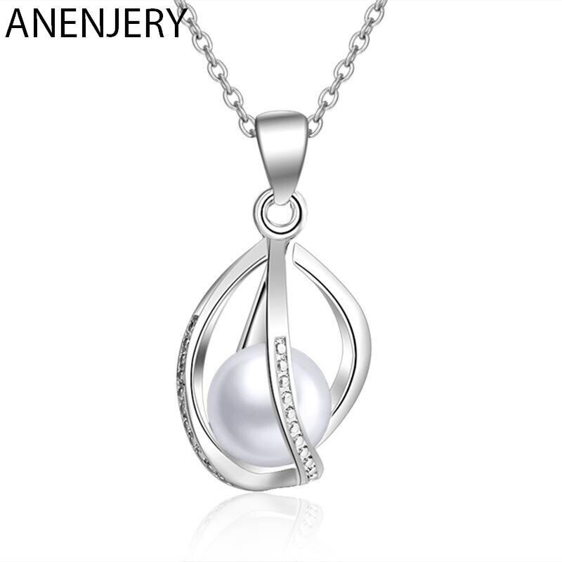 送料無料 ANENJERYシルバーカラーシミュレートパールツイストペンダントネックレスレディースネックレスCZジルコン45cmチェーンS-N237 レース 真珠 銀 アクセサリー AE165581269428774