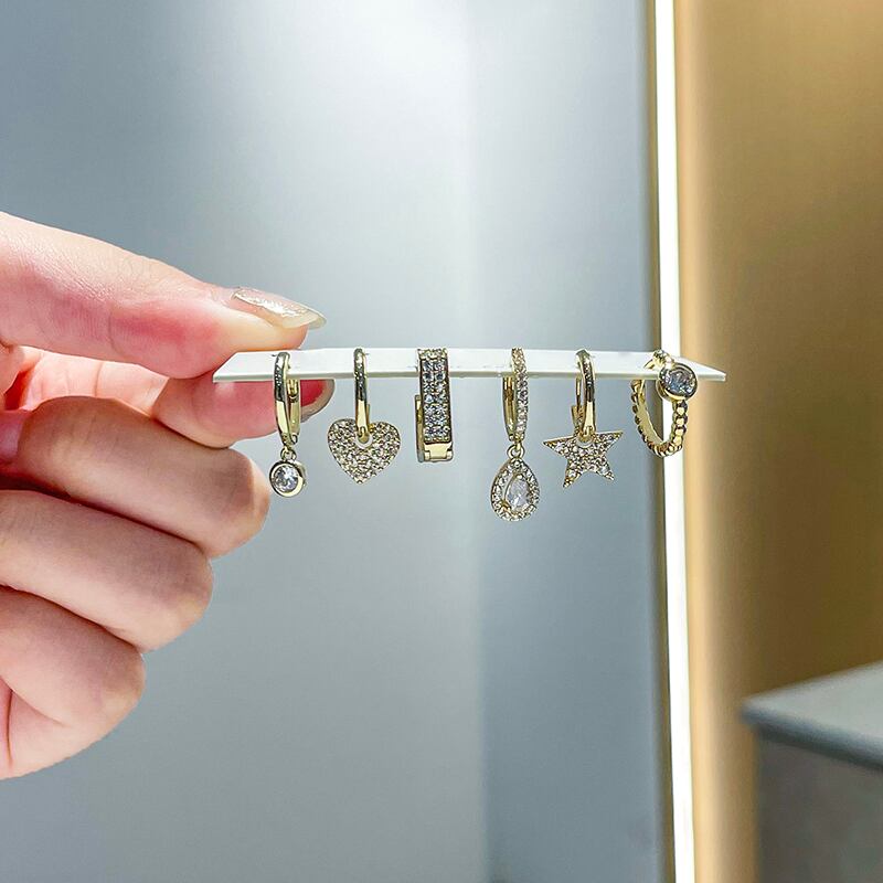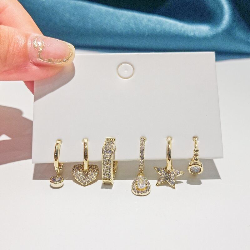送料無料 ANENJERYシルバーカラーカッパージルコンスクエアフープピアスレディース6ピーススターハートシェイプピアスセット イヤリング リング 指輪 銀 スクウェア アクセサリー AE16559038013234