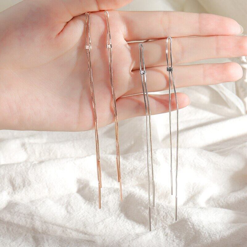 送料無料 ANENJERYシルバーカラーシンプルロングチェーンTelイヤリングレディースパーティーダングルピアスジュエリーS-E1243 指輪 銀 アクセサリー AE165537185037690