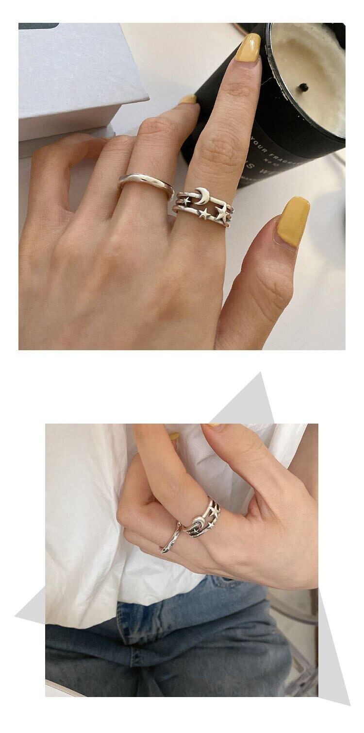 送料無料 ANENJERYシルバーカラーヴィンテージスリーレイヤームーンスタータイシルバーカラーリングレディース2022ミニマリストアクセサリーギフトS-R808 指輪 銀 ビンテージ アクセサリー AE165592415931071