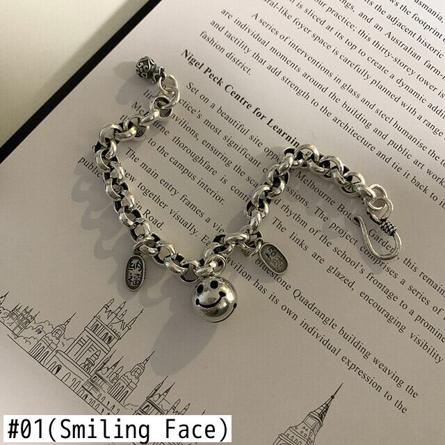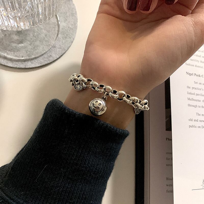送料無料 ANENJERYシルバーカラースマイルフェイスブレスレット女性男性タイシルバーラウンドボールアジャスタブルブレスレット2022 銀 アクセサリー AE165567820149278
