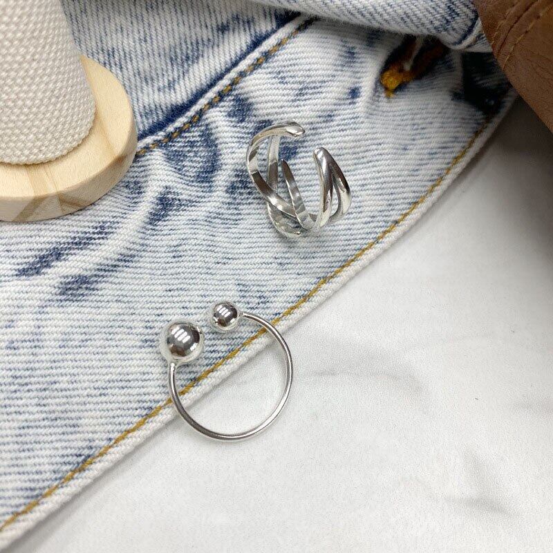 送料無料 ANENJERYシルバーカラーダブルラウンドスムースボールリングクロスツイニングオープンリングレディースジュエリーギフトS-R694 指輪 銀 アクセサリー AE16557636595418