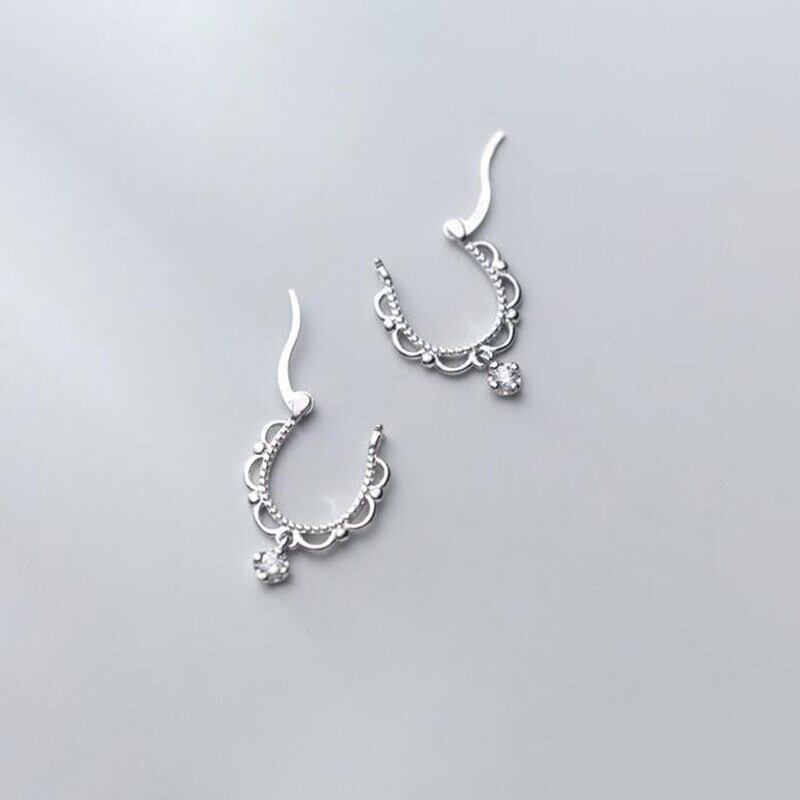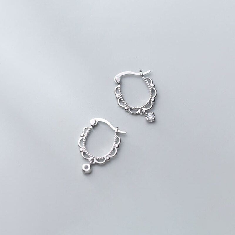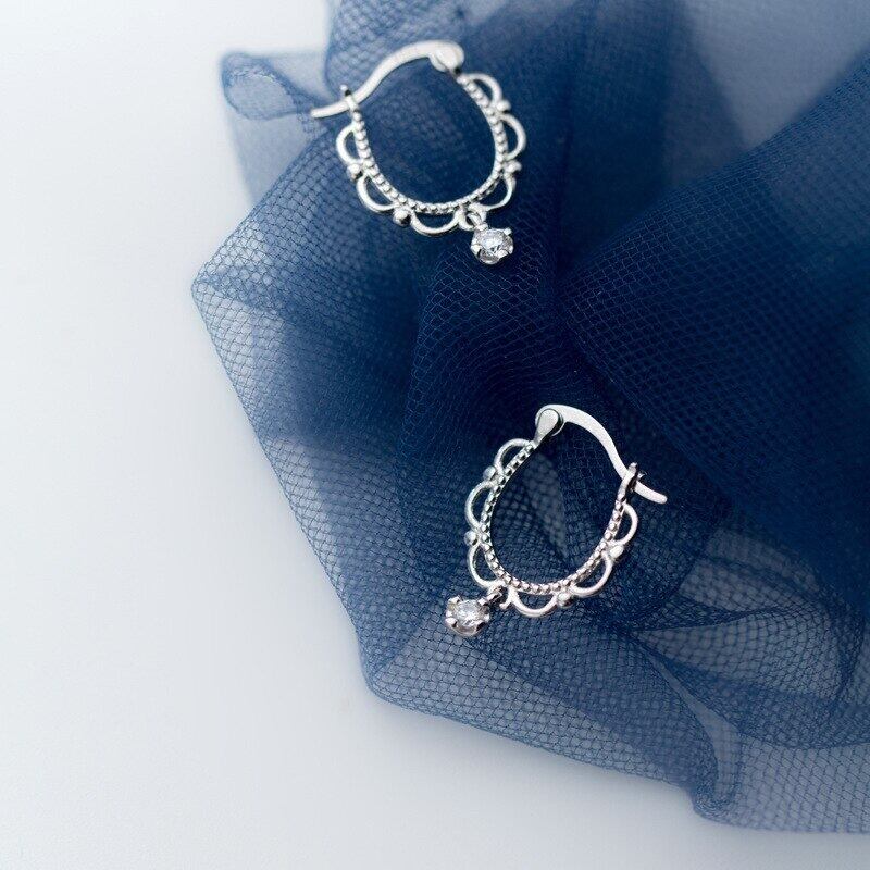 送料無料 ANENJERYシルバーカラー可憐な中空レースシェイプフープピアスかわいい耳のジュエリー女性のパーティーギフトイヤリングS-E1157 大人ガーリー スウィート キュート カジュアル 指輪 銀 アクセサリー AE165553782384446