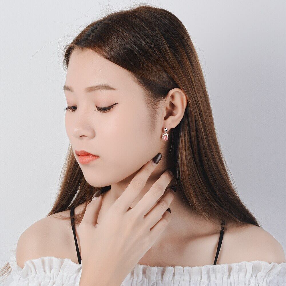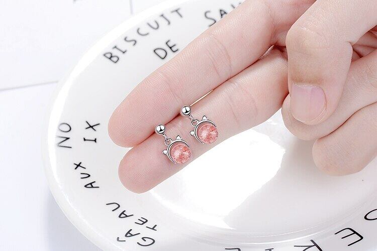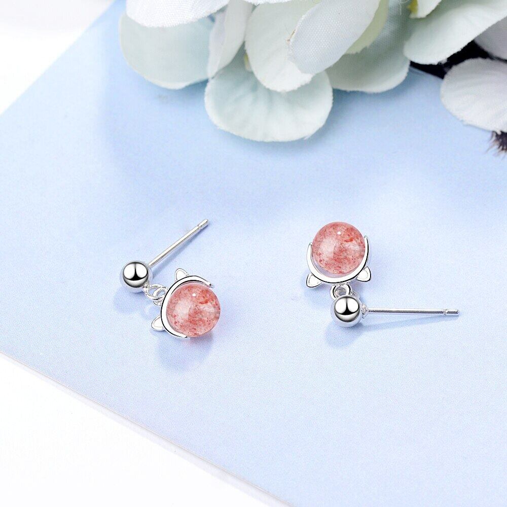 送料無料 ANENJERYシルバーカラーナチュラルストロベリークリスタルビーズアニマルキャット型イヤリング女性クリスマスジュエリーS-E141 指輪 銀 天然 アクセサリー AE165546171208011