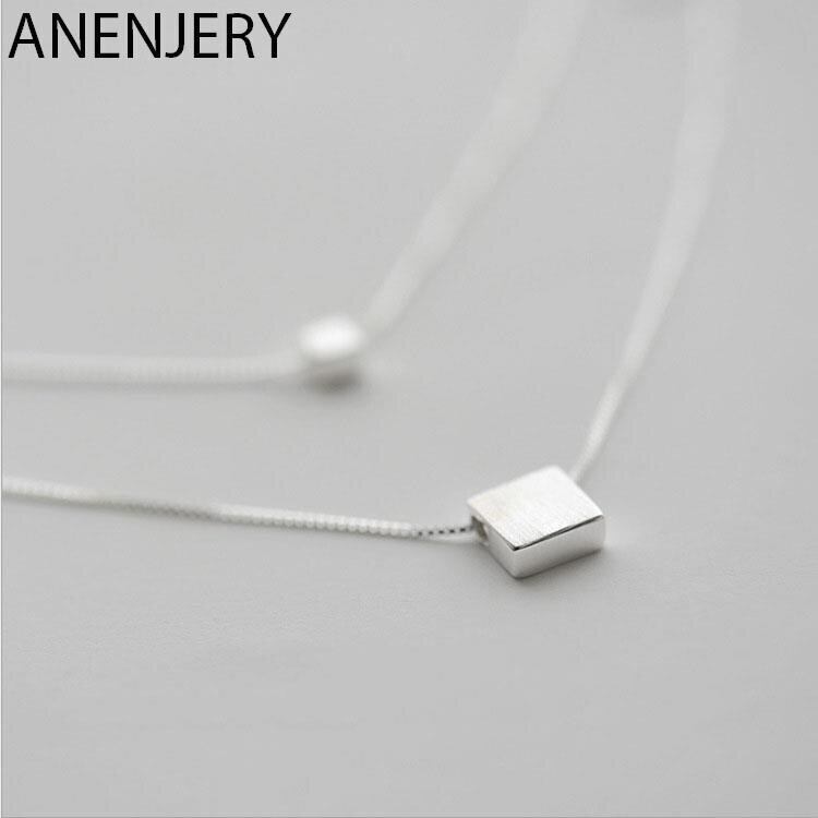 送料無料 ANENJERYシルバーカラーダブルレイヤースクエアキューブペンダントネックレス幾何学的ネックレスジュエリー女性S-N194 レース 銀 スクウェア アクセサリー AE165581933029097