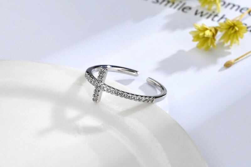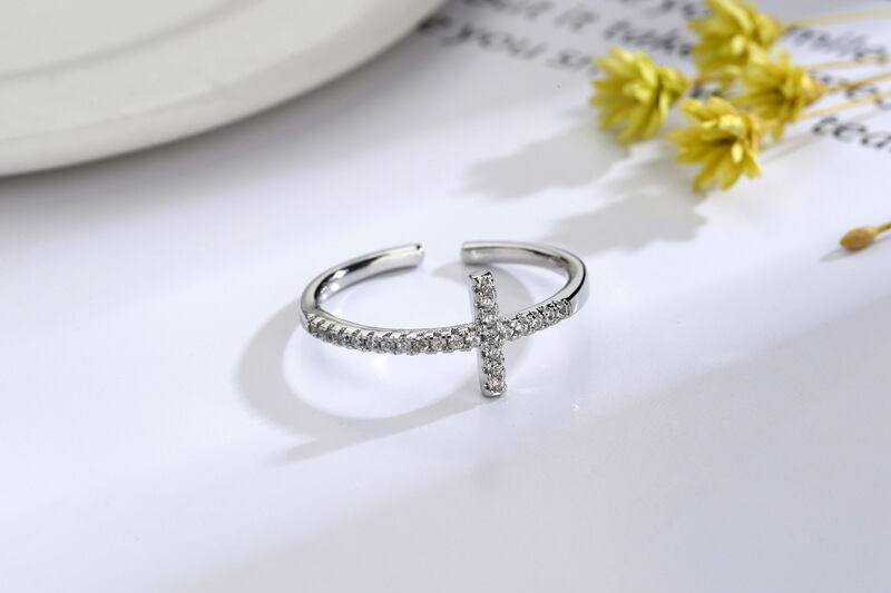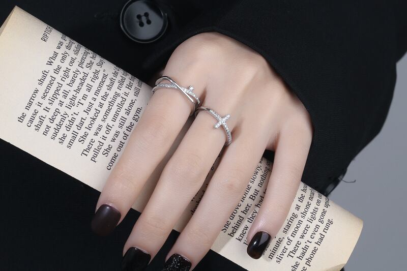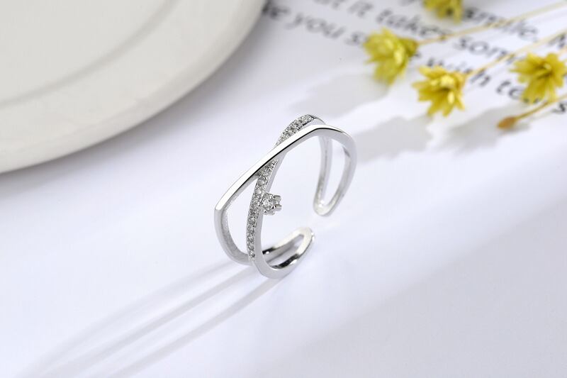 送料無料 ANENJERYシルバーカラーマイクロモザイククロスリング女性調節可能な結婚指輪 アジャスタブル 銀 アクセサリー AE165551423319744