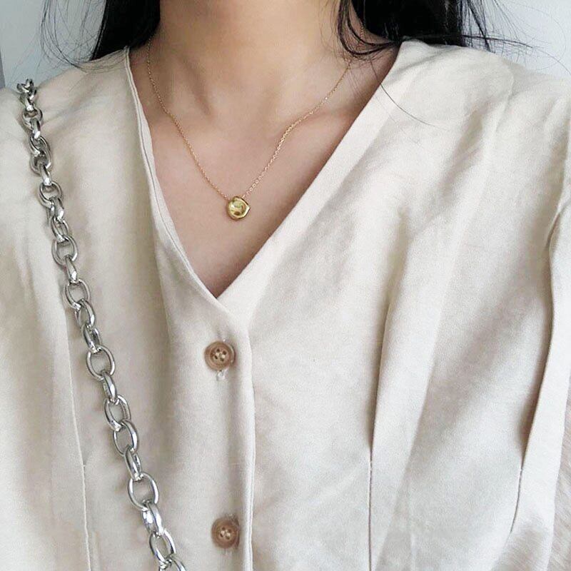 送料無料 ANENJERYシルバーカラーイレギュラーコンカボコンベックスチャームネックレスゴールド鎖骨チェーンネックレスレディースギフトS-N532 レース 銀 アクセサリー AE16557565650102