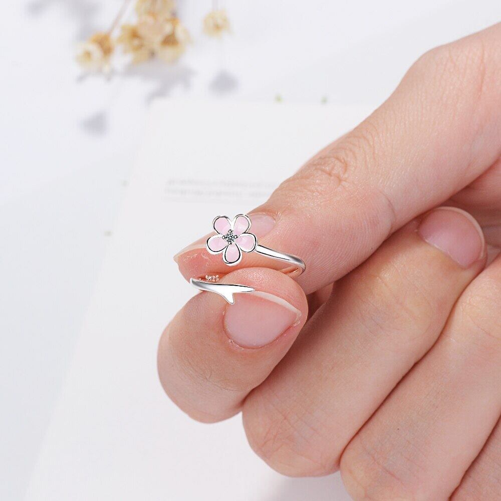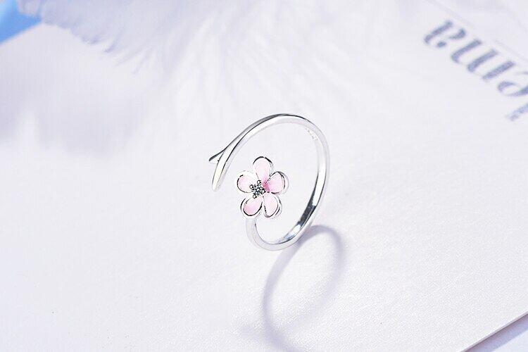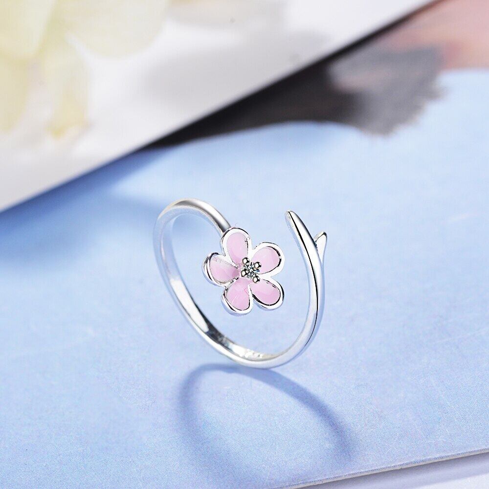 送料無料 ANENJERYシルバーカラーピンク桜フラワーアジャスタブルリングレディースクリエイティブジュエリー発送S-R375 指輪 フラワーデザイン 銀 アクセサリー AE165566815482903