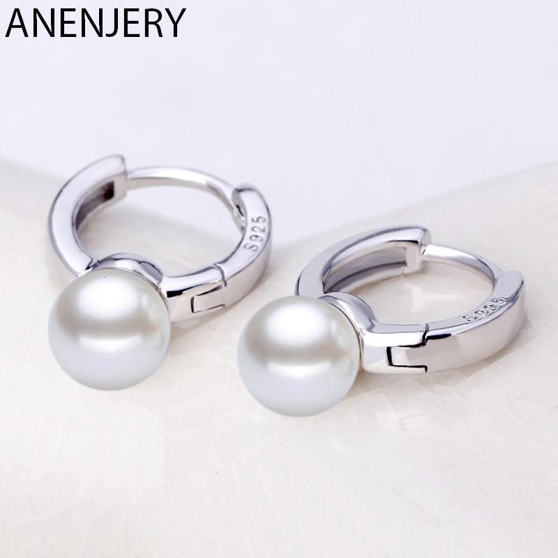 送料無料 ANENJERYシルバーカラー絶妙なパールペンダントフックイヤリング女性のウェディングジュエリーギフト発送S-E171 真珠 指輪 銀 アクセサリー AE165542701174222