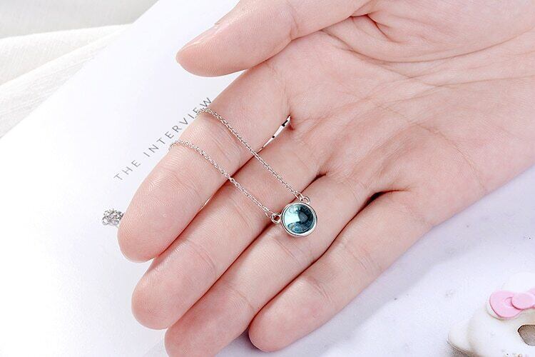送料無料 ANENJERYシルバーカラーラウンドブルークリスタルペンダントネックレス女性ウェディングアクセサリーギフト発送S-N293 レース 銀 アクセサリー AE165548727901558