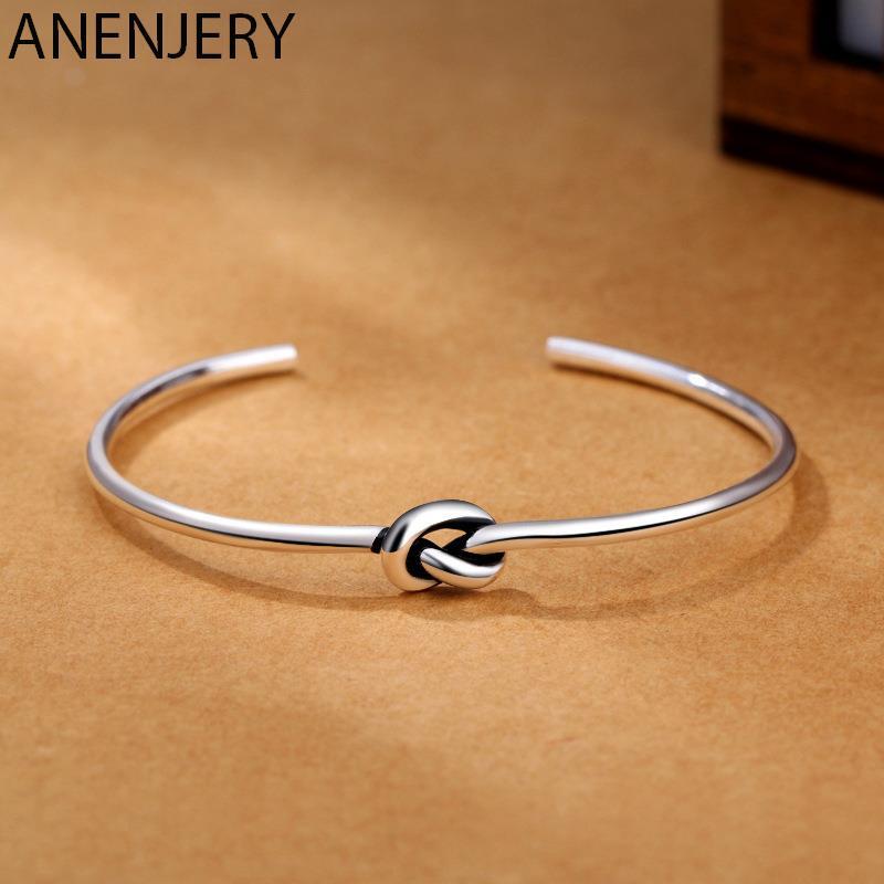 送料無料 ANENJERYシルバーカラーハンドメイドノットタイシルバーバングルブレスレットシンプルヴィンテージカフスオープンバングルレディースメンズS-B284 銀 ビンテージ アクセサリー AE165535961494221