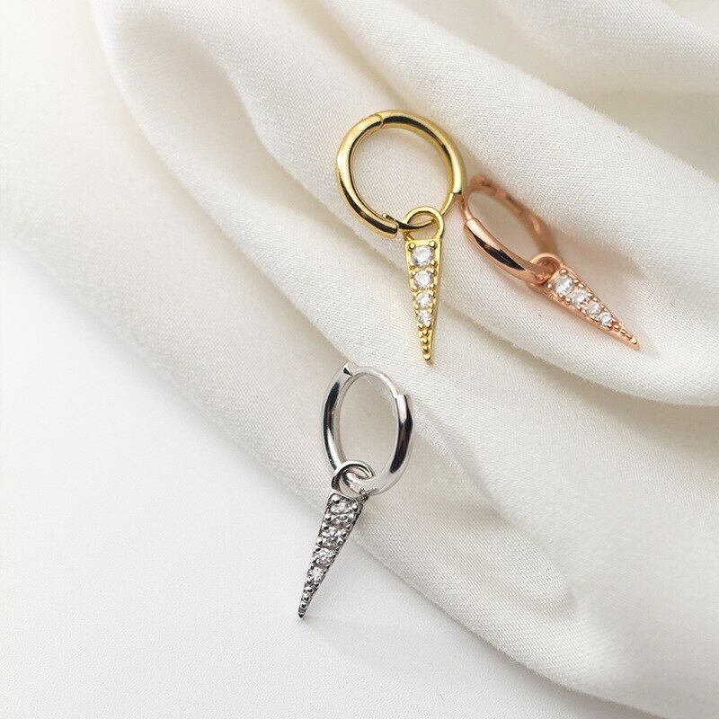 送料無料 シルバーカラーパンクトライアングルペンダントフープピアス3色キュービックジルコンピアスレディースパーティージュエリーS-E1084 イヤリング 銀 アクセサリー AE165561428599791
