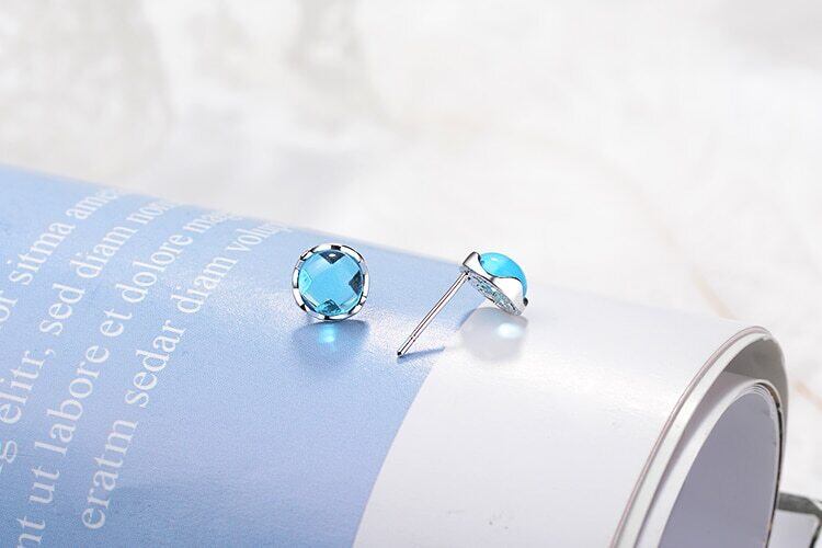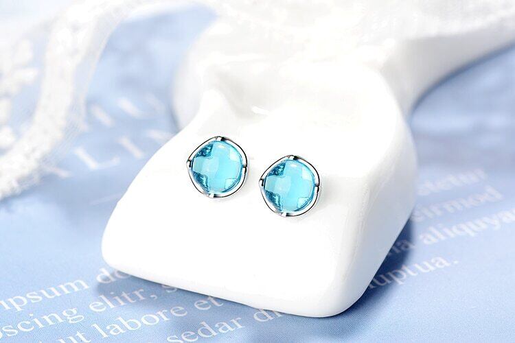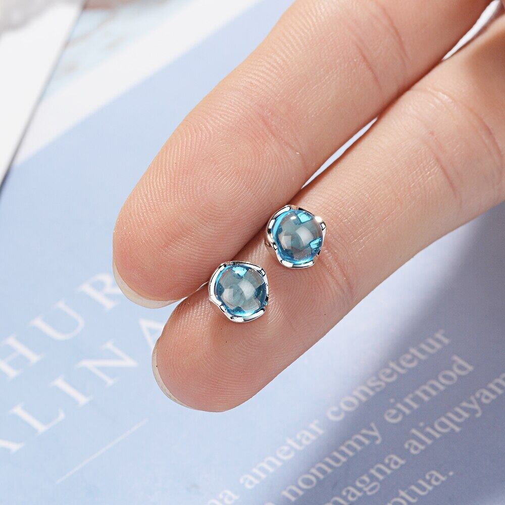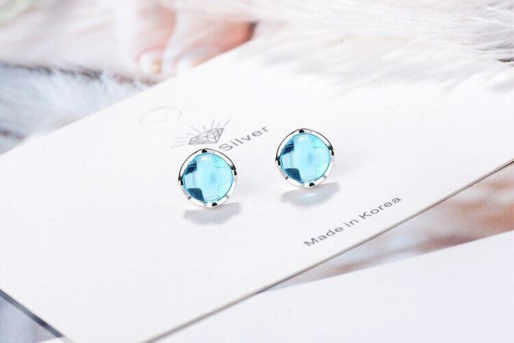 送料無料 ANENJERYシルバーカラーデリケートブルーラウンドクリスタルスタッドピアス女性ブライドメイドジュエリーイヤリングギフトS-E838 指輪 銀 アクセサリー AE165535755832356