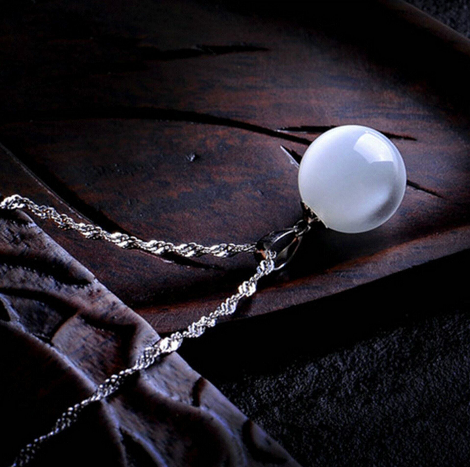 送料無料 ANENJERYシルバーカラーナチュラルホワイトキャットアイストーンビーズペンダントネックレスオパールペンダントネックレスジュエリーレディースS-N151 レース 蛋白石 銀 天然 アクセサリー AE165553684599415
