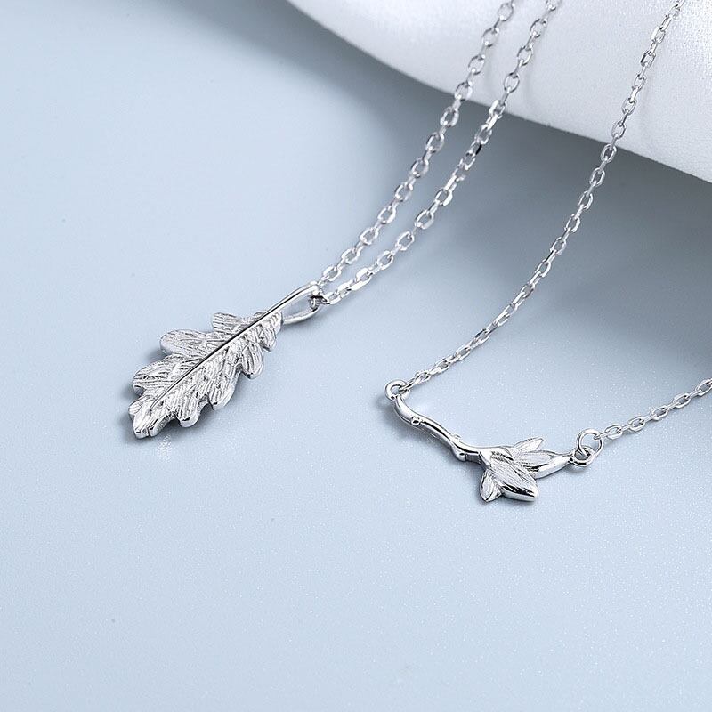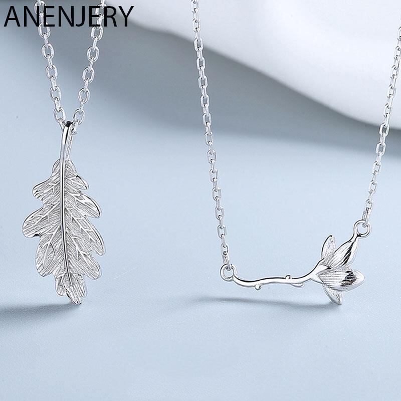送料無料 ANENJERYシルバーカラーリーフフラワーカップルネックレスヴィンテージハンドメイド鎖骨チェーンジュエリーギフト レース フラワーデザイン 銀 ビンテージ アクセサリー AE165594546108756