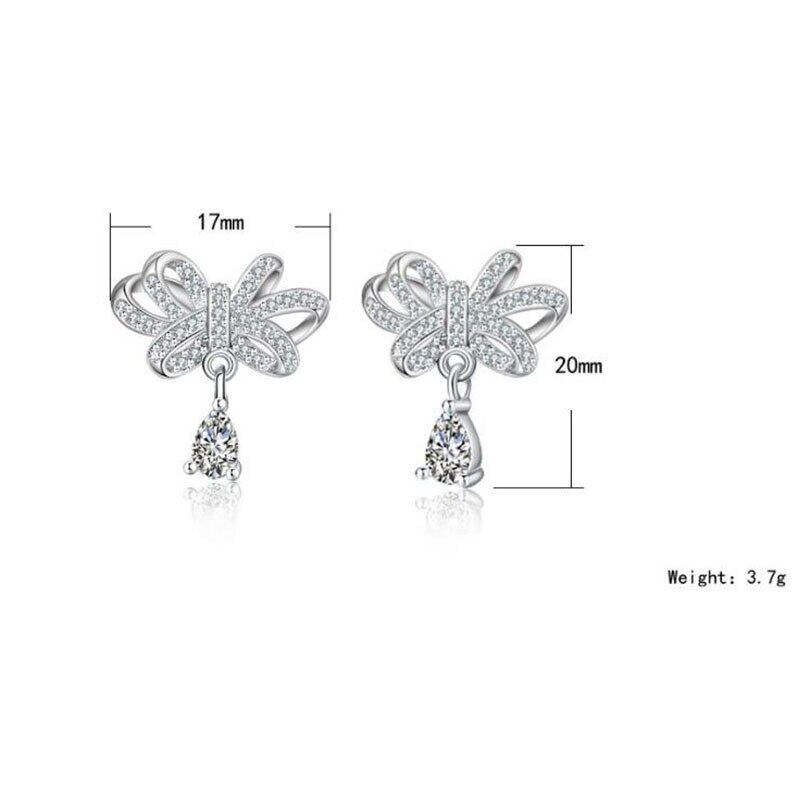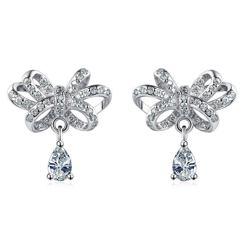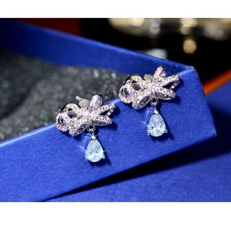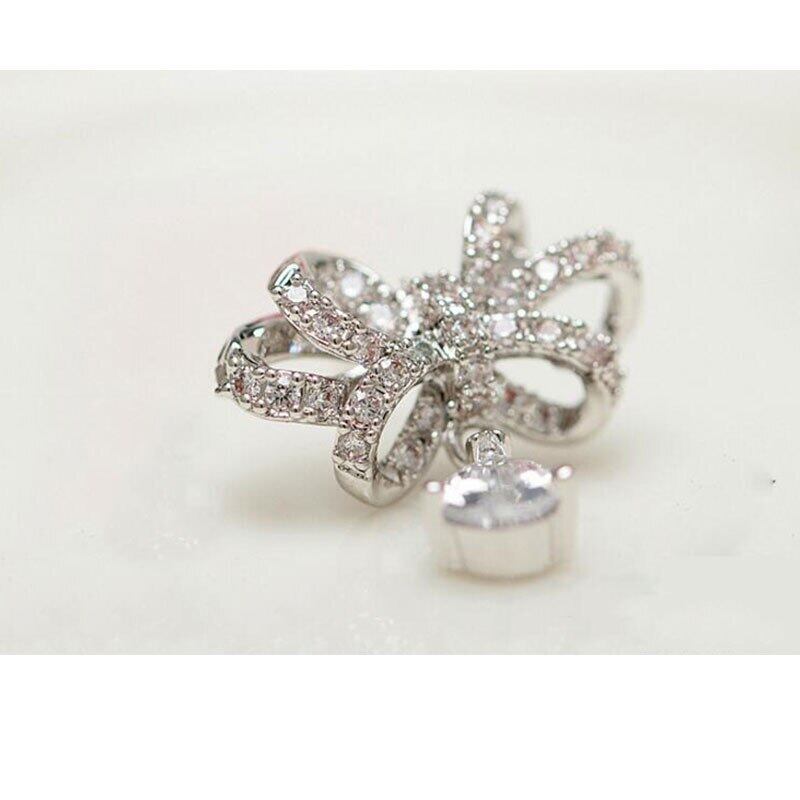 送料無料 ANENJERYシルバーカラースパークリングボウノットピアス、クリスタルジルコンペンダントウェディングパーティージュエリーS-E349 リボン イヤリング 指輪 銀 アクセサリー AE165526698439225