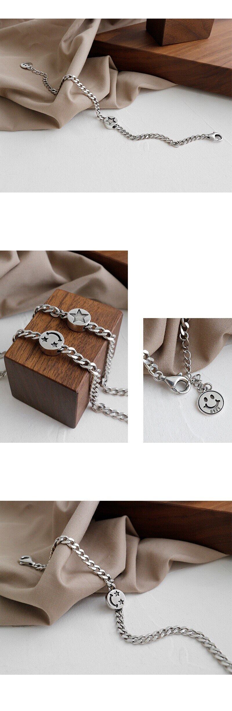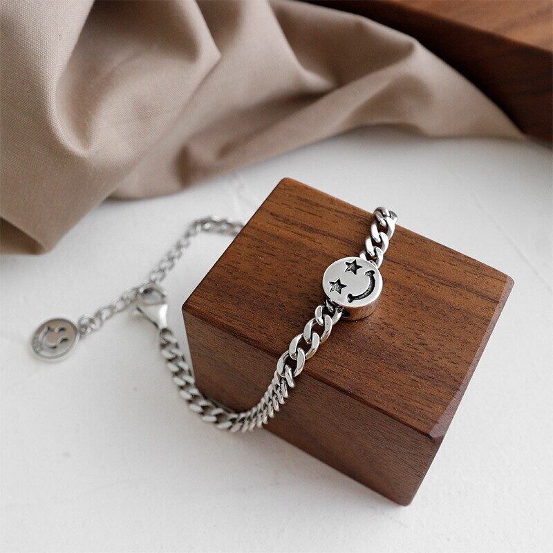 送料無料 ANENJERYシルバーカラーヴィンテージスマイルフェイススタータイシルバーシンプルアジャスタブルブレスレットレディースジュエリーギフトS-B332 銀 ビンテージ アクセサリー AE16559138110552