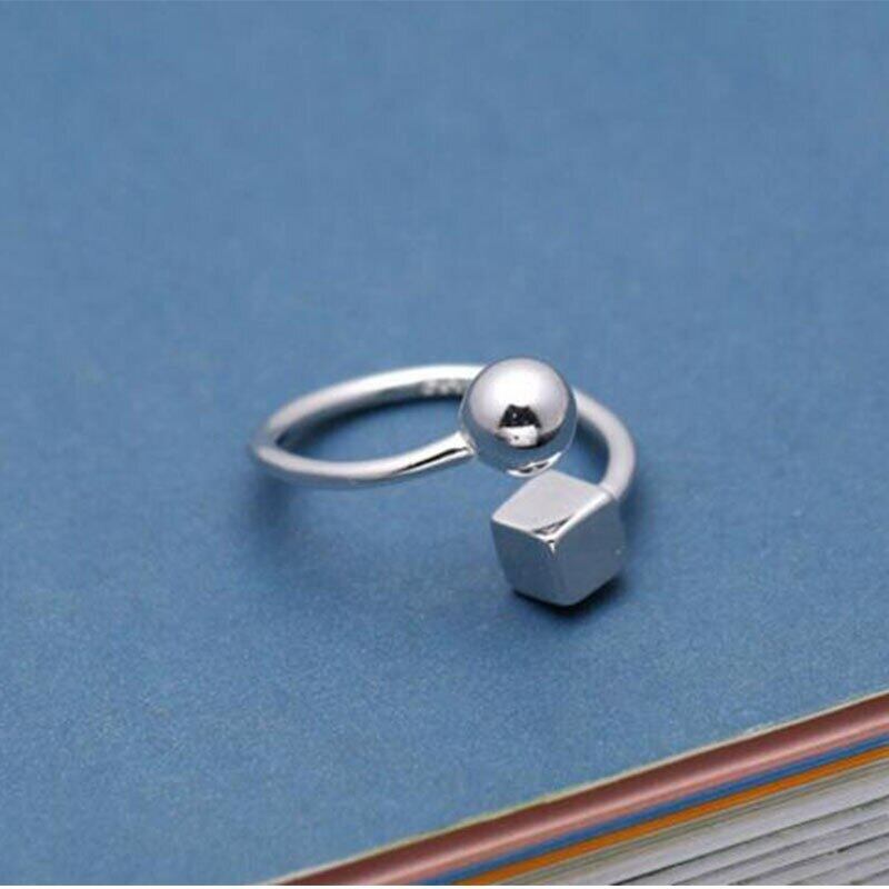 送料無料 ANENJERYシルバーカラートレンディシルバーカラーラウンドボールキューブ幾何学リングアジャスタブルジュエリーレディースギフトS-R291 指輪 銀 アクセサリー AE16555796458335