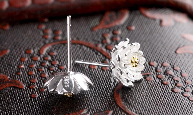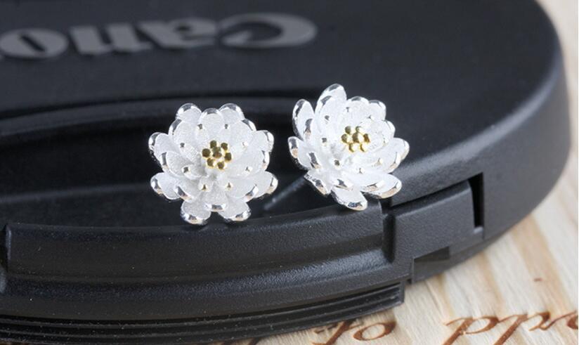 送料無料 ANENJERYシルバーカラーロータスフラワースタッドピアス女性ウェディングジュエリーギフトS-E152 イヤリング リング 指輪 フラワーデザイン 銀 アクセサリー AE165591373223066