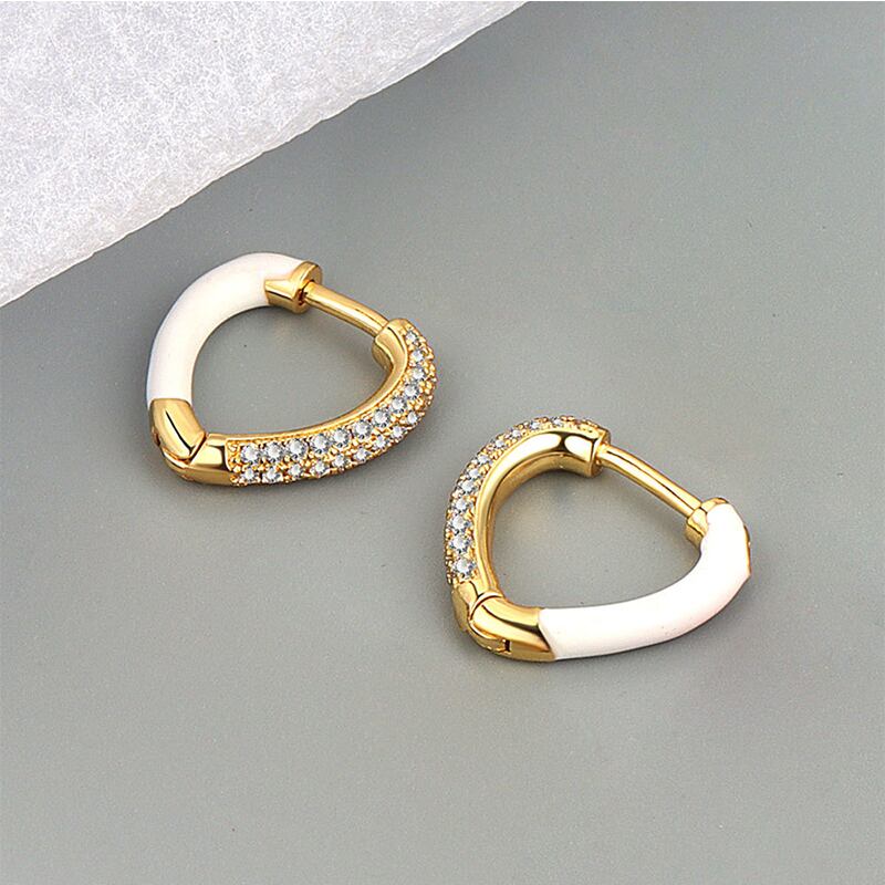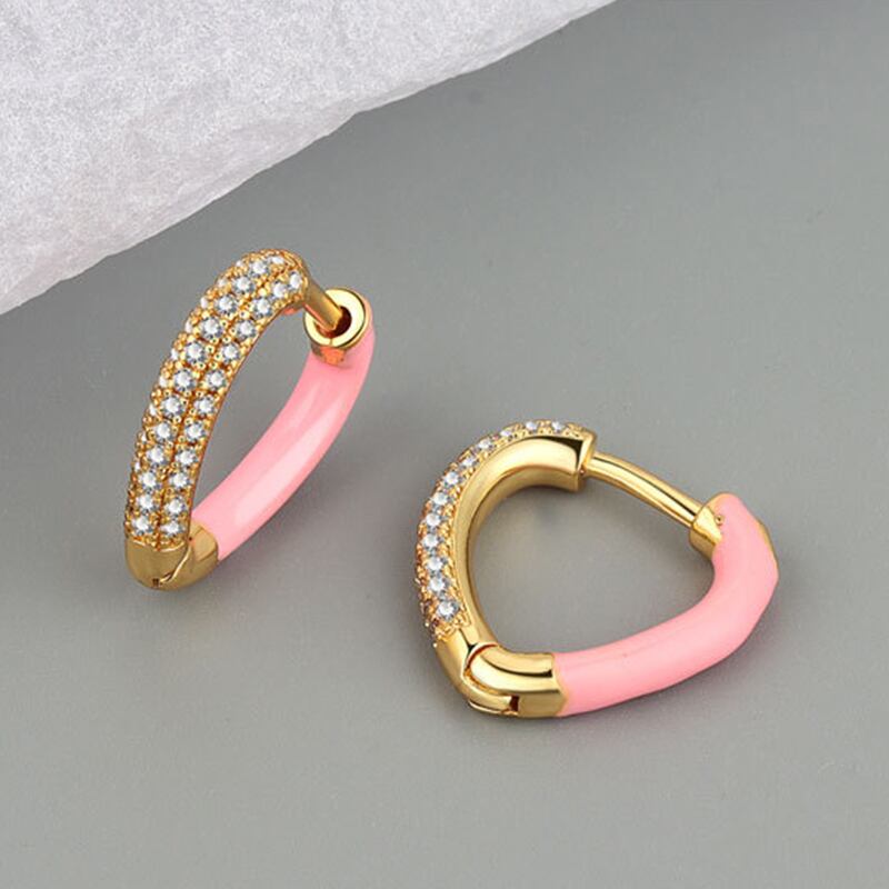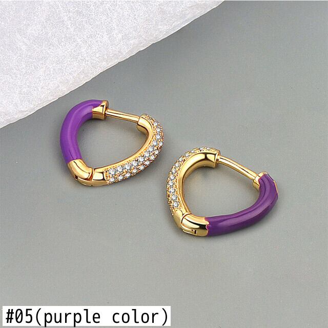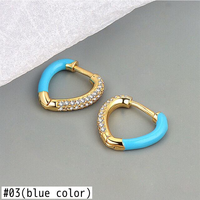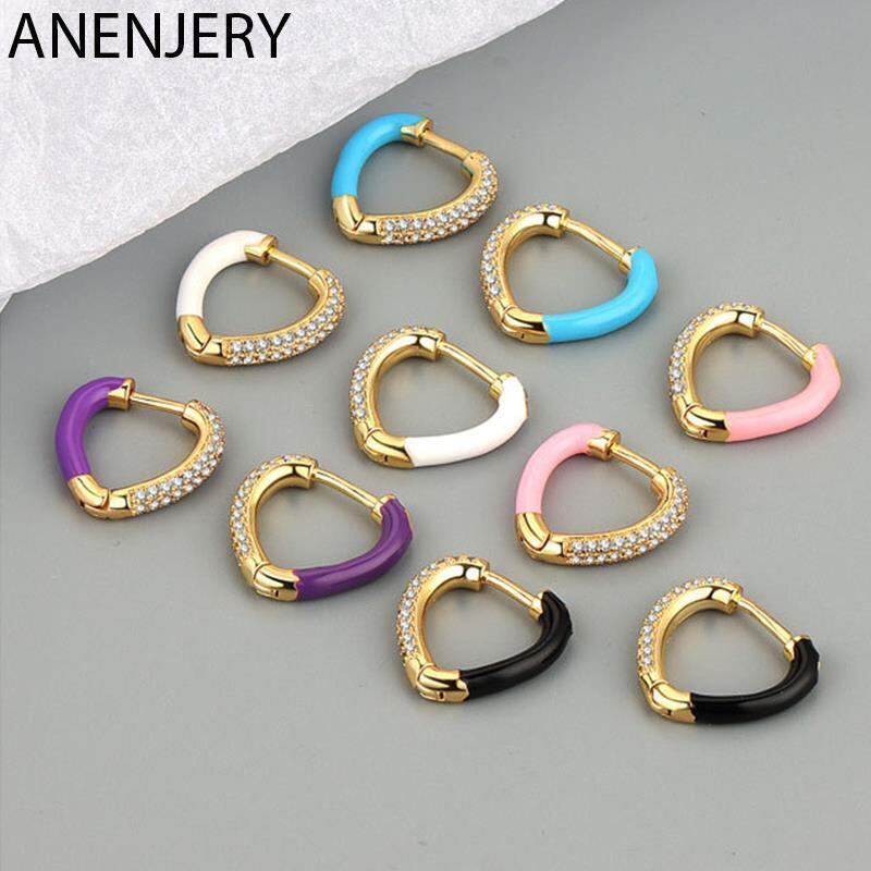 送料無料 ANENJERYシルバーカラーマイクロジルコンカラフルラブハートフープピアス気質シンプルデイリージュエリーオールマッチ イヤリング リング 指輪 銀 アクセサリー AE165513566128129