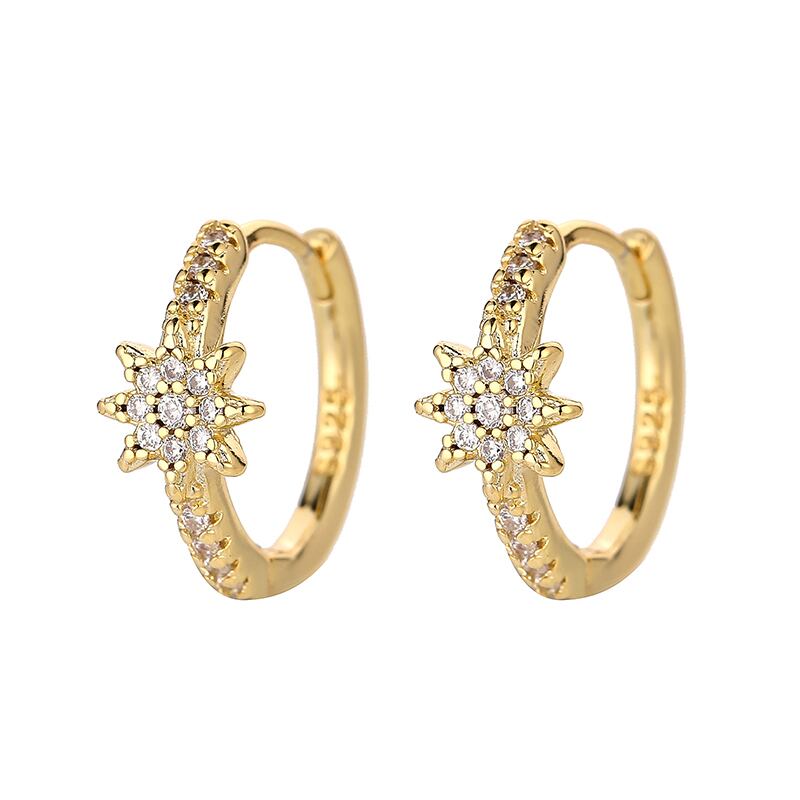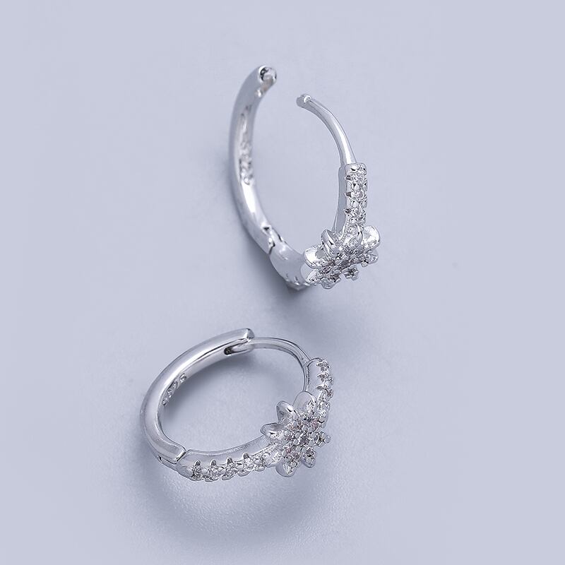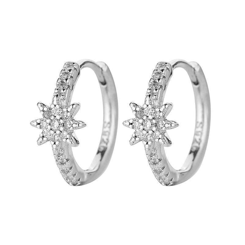 送料無料 ANENJERYシルバーカラー銅ジルコンスターフープピアス女性オールマッチシャイニーダニティジュエリー イヤリング リング 指輪 銀 アクセサリー AE165572184703883