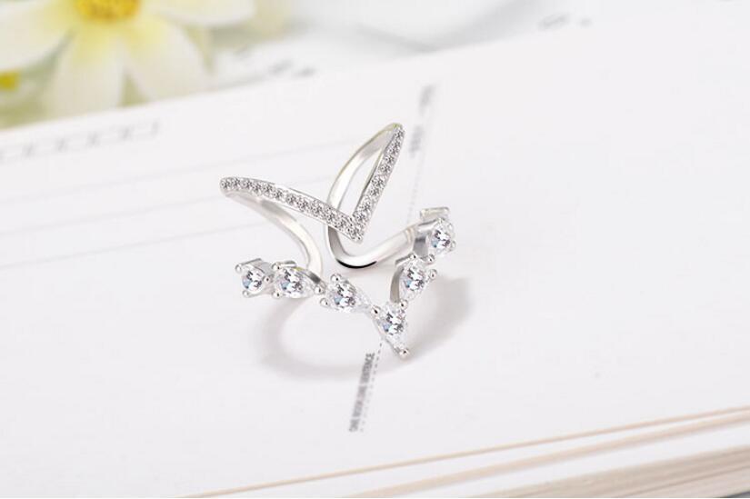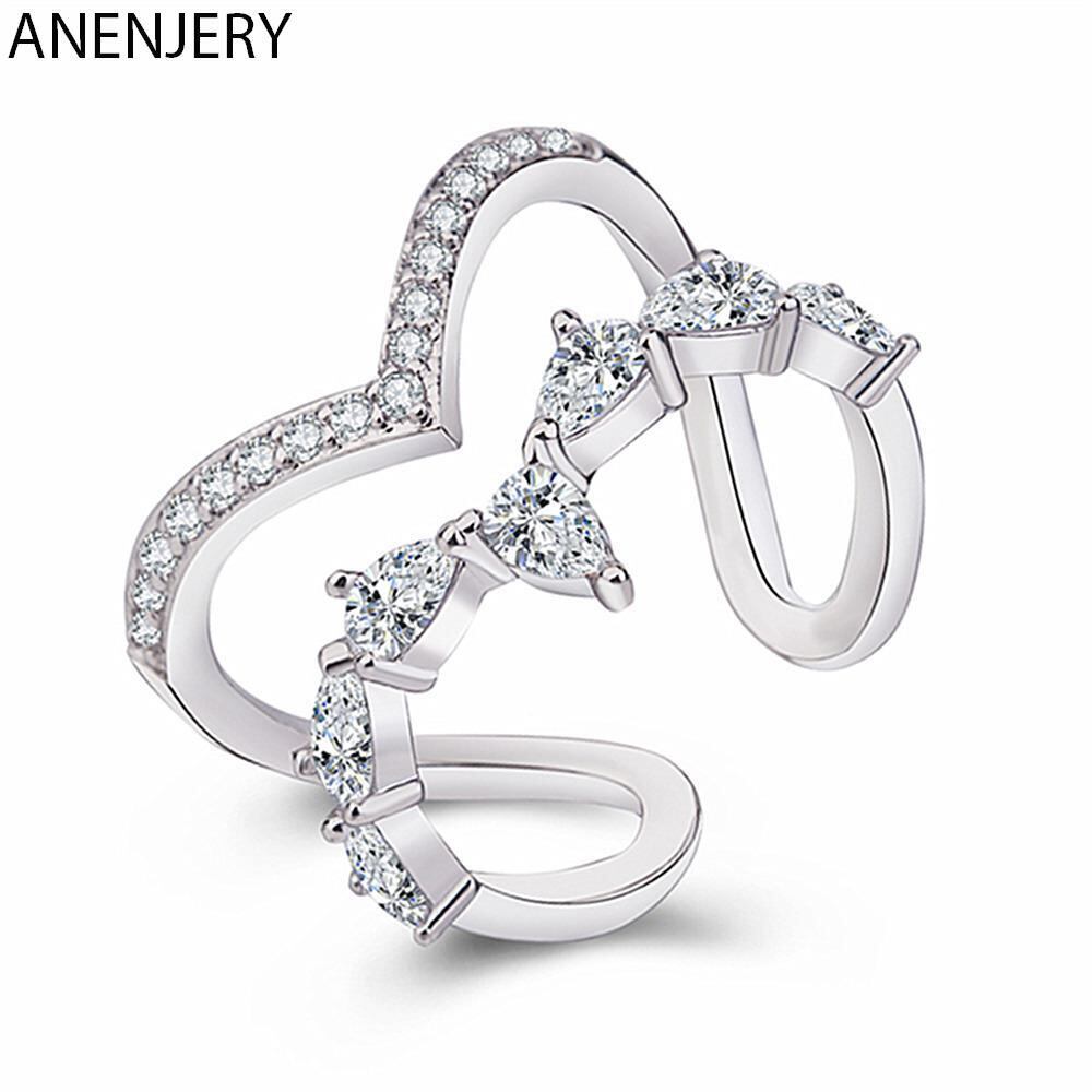送料無料 ANENJERYシルバーカラーダブルレイヤー不規則な幾何学的なクリスタルジルコンリングパーティージュエリー女性S-R172 指輪 銀 アクセサリー AE16555725629059