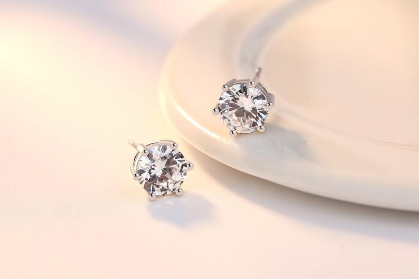 送料無料 ANENJERYシルバーカラー低アレルギー性シックスクローキュービックジルコンクリスタルスタッドジルコンレディースガールズジュエリーS-E34 銀 アクセサリー AE165592919767357