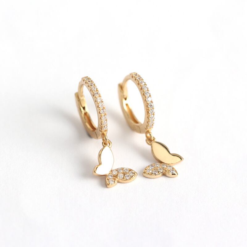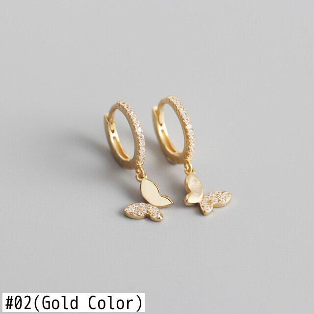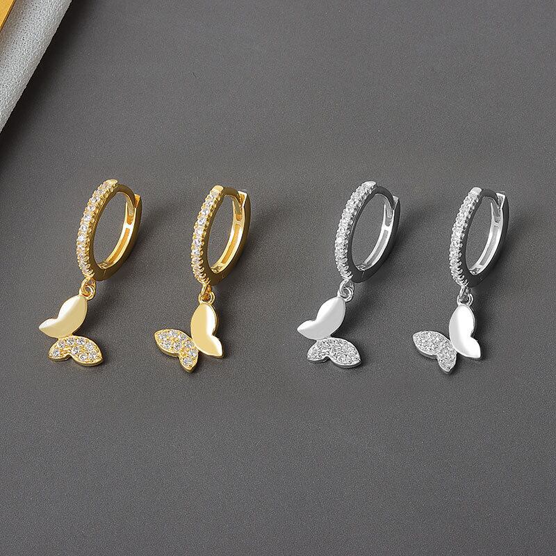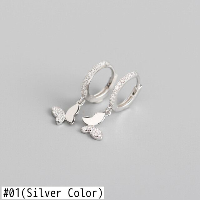 送料無料 ANENJERYシルバーカラーバタフライフープピアス女性キュービックジルコンゴールドシルバーイヤージュエリーギフトS-E1375 イヤリング リング 指輪 銀 アクセサリー AE165590671718592
