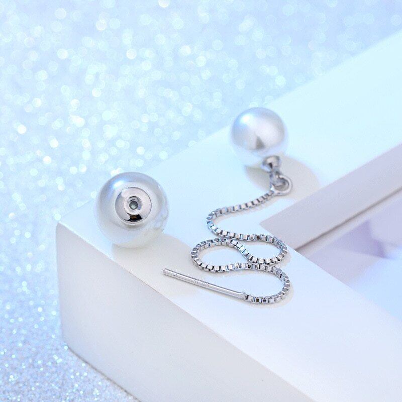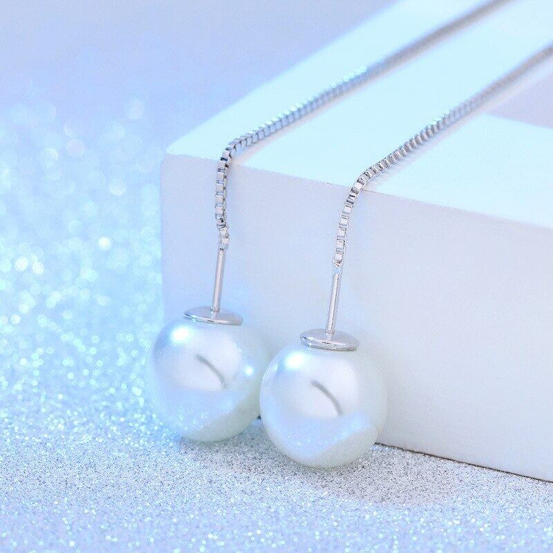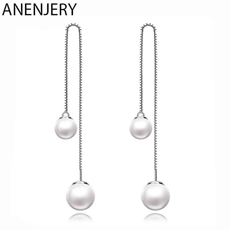 送料無料 ANENJERYシルバーカラーダブルパールロングチェーンピアスイヤラインダングルピアスレディースジュエリーギフトS-E87 イヤリング 真珠 リング 指輪 銀 アクセサリー AE165549075795631