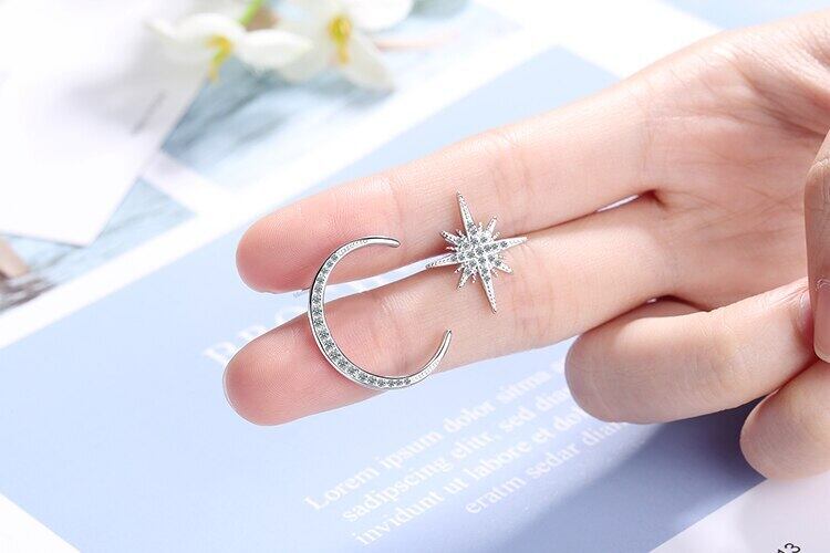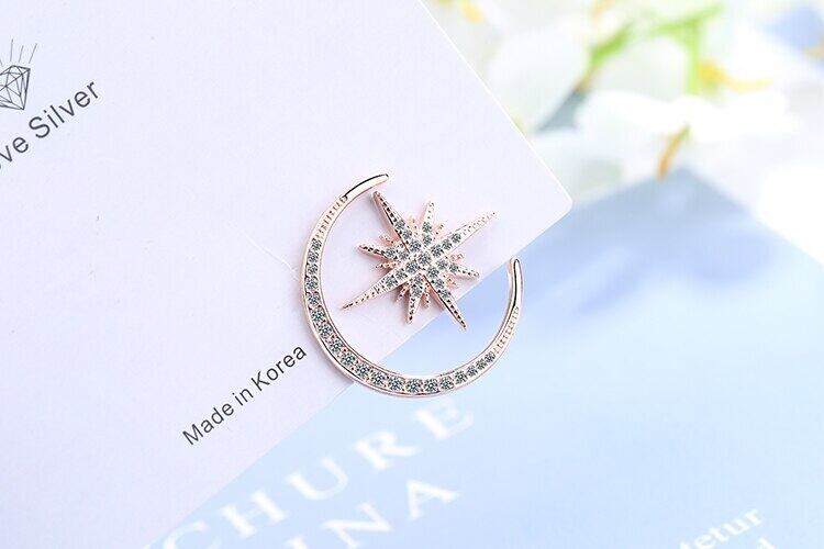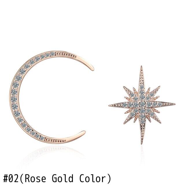 送料無料 ANENJERYシルバーカラースタームーンアシンメトリースタッドピアスレディパーティージュエリーアクセサリーS-E1034 イヤリング 銀 アクセサリー AE165514655978194