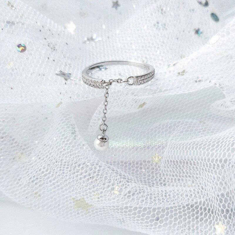 送料無料 ANENJERYシルバーカラーマイクロジルコンリングシミュレートされたパールチェーンTelアジャスタブルリングレディースanillosBagueS-R334 指輪 真珠 銀 人工 アクセサリー AE165540586964661