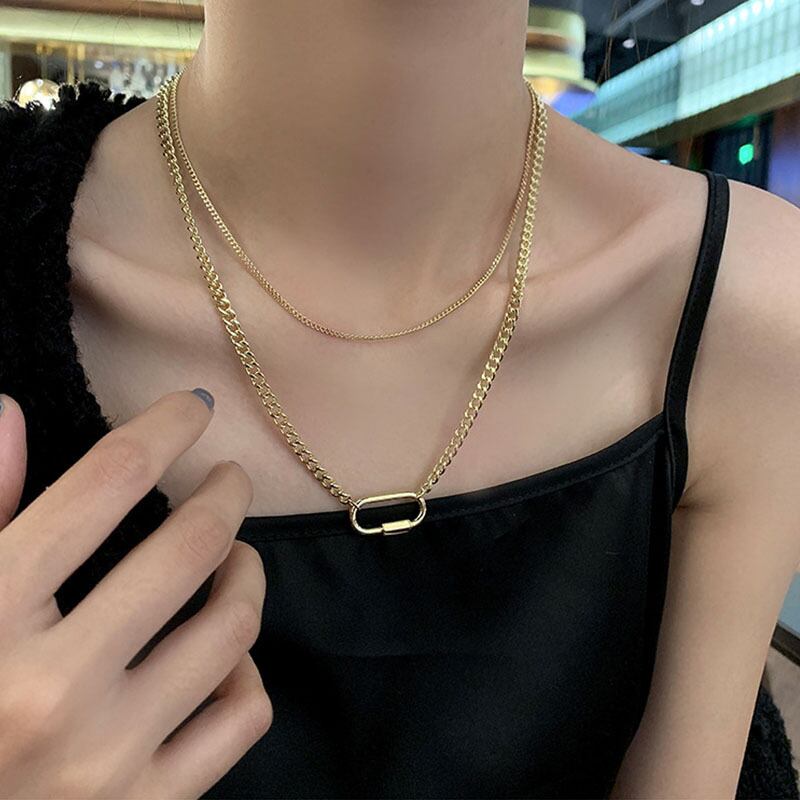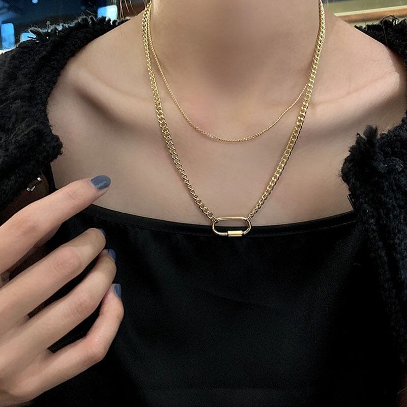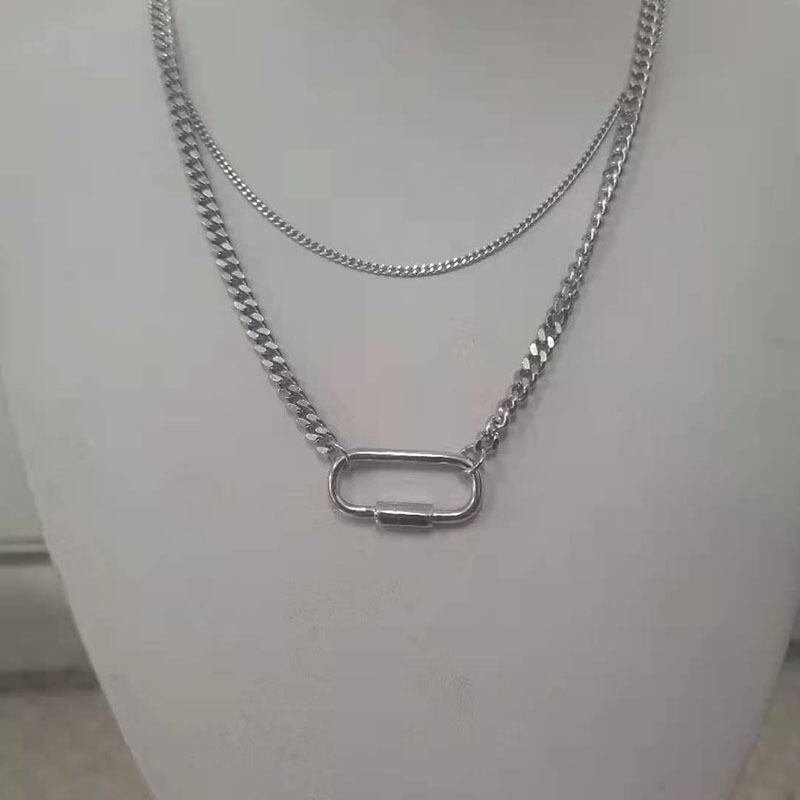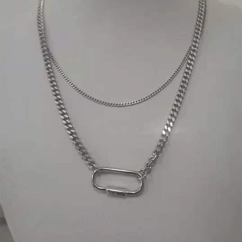 送料無料 ANENJERYシルバーカラーペーパークリップネックレス女性ダブルレイヤーネックレスパーティージュエリーギフト レース 銀 アクセサリー AE165597124382102