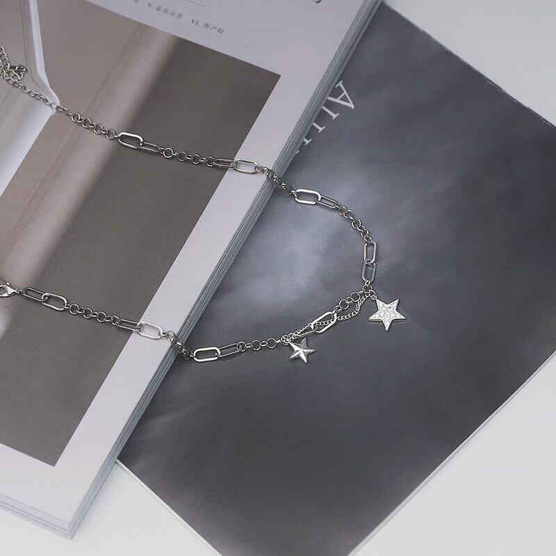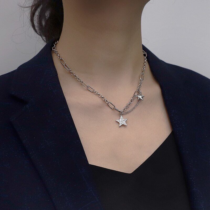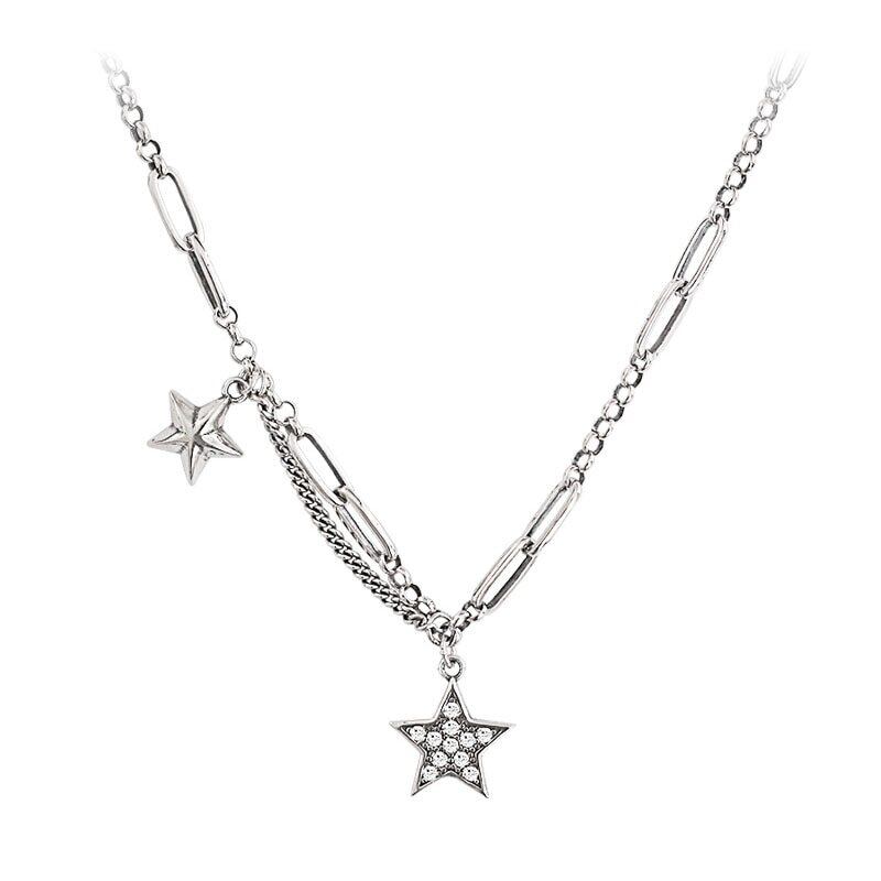 送料無料 ANENJERYシルバーカラーミューティルレイヤースタータイシルバーネックレスヒップホップキュービックジルコンジュエリーレディースメンズギフトS-N563 レース 銀 アクセサリー AE165560512032901