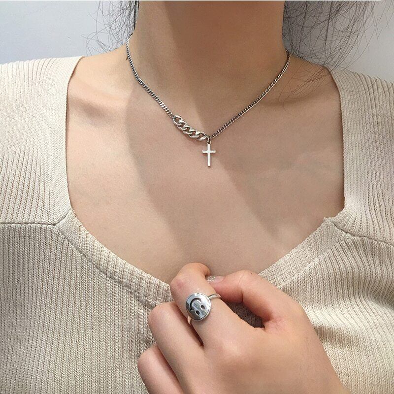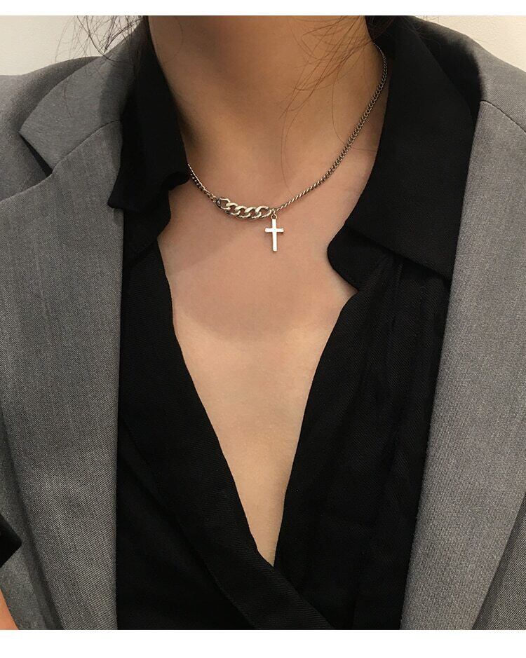 送料無料 ANENJERYシルバーカラーヴィンテージクロスペンダントネックレスヴィンテージロックチェーンタイシルバーネックレスレディースジュエリーギフトS-N622 レース 銀 ビンテージ アクセサリー AE16552808378209