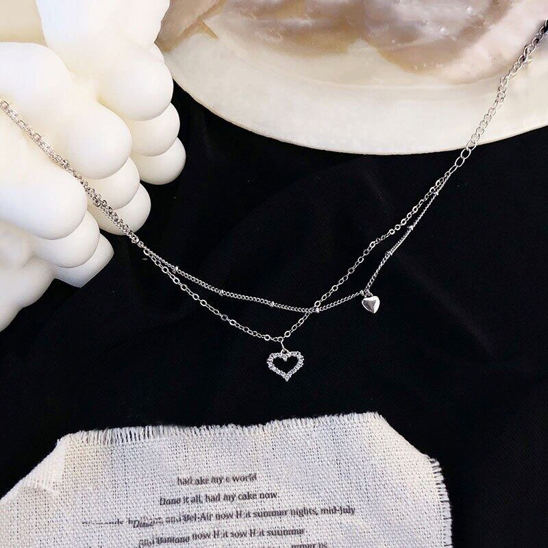 送料無料 ANENJERYシルバーカラーダブルレイヤーラブハートアンクレットブレスレット可憐なキュービックジルコニアアンクレット女性サマーフットジュエリーS-B328 夏物 銀 アクセサリー AE165554559325466